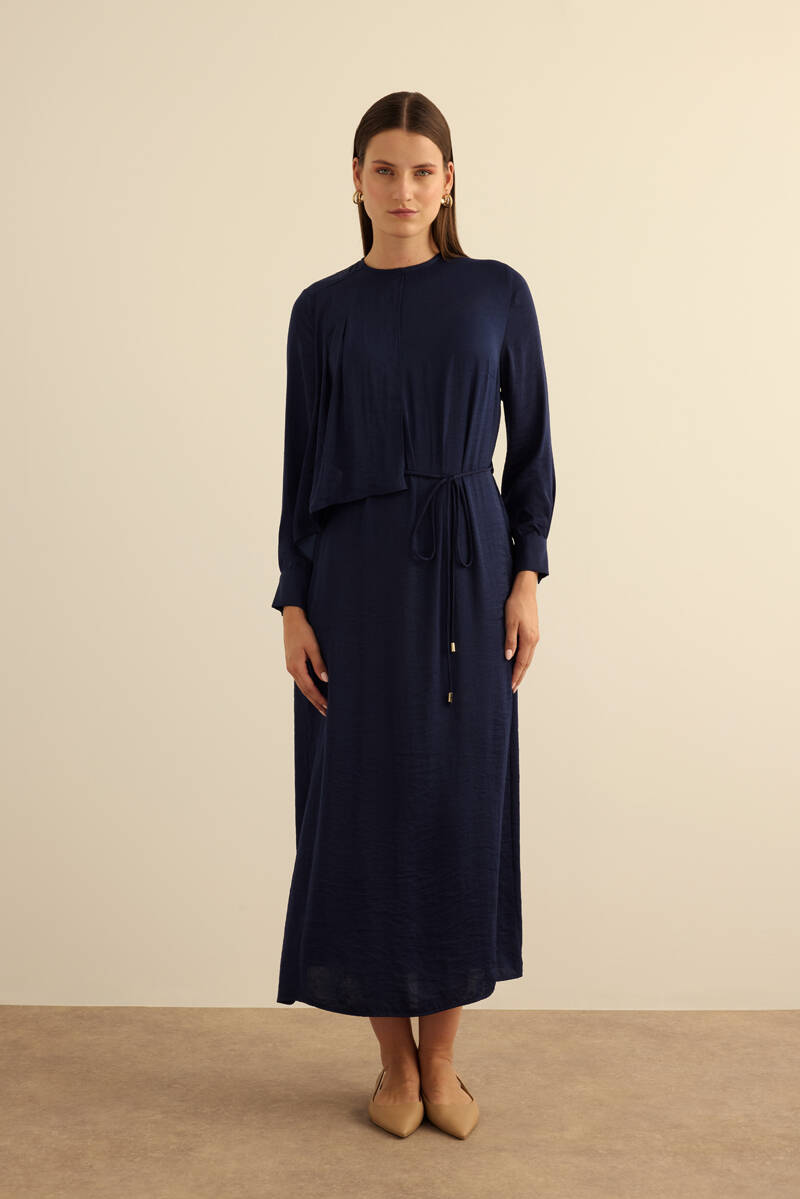 Mavi Çizgi Desenli Cotton Elbise