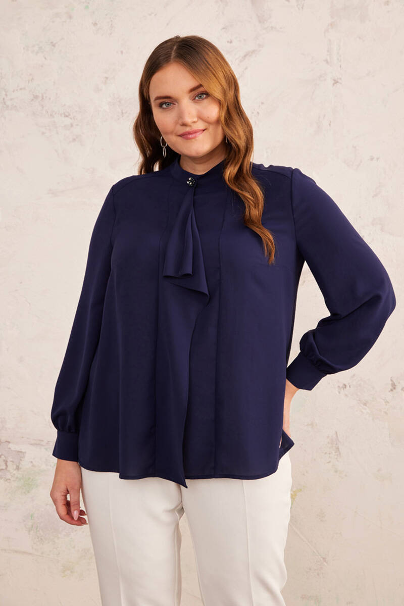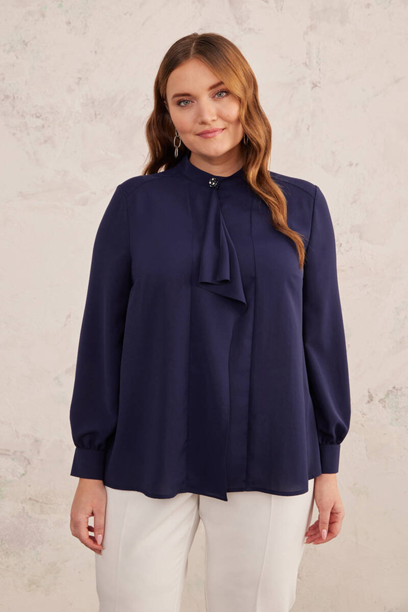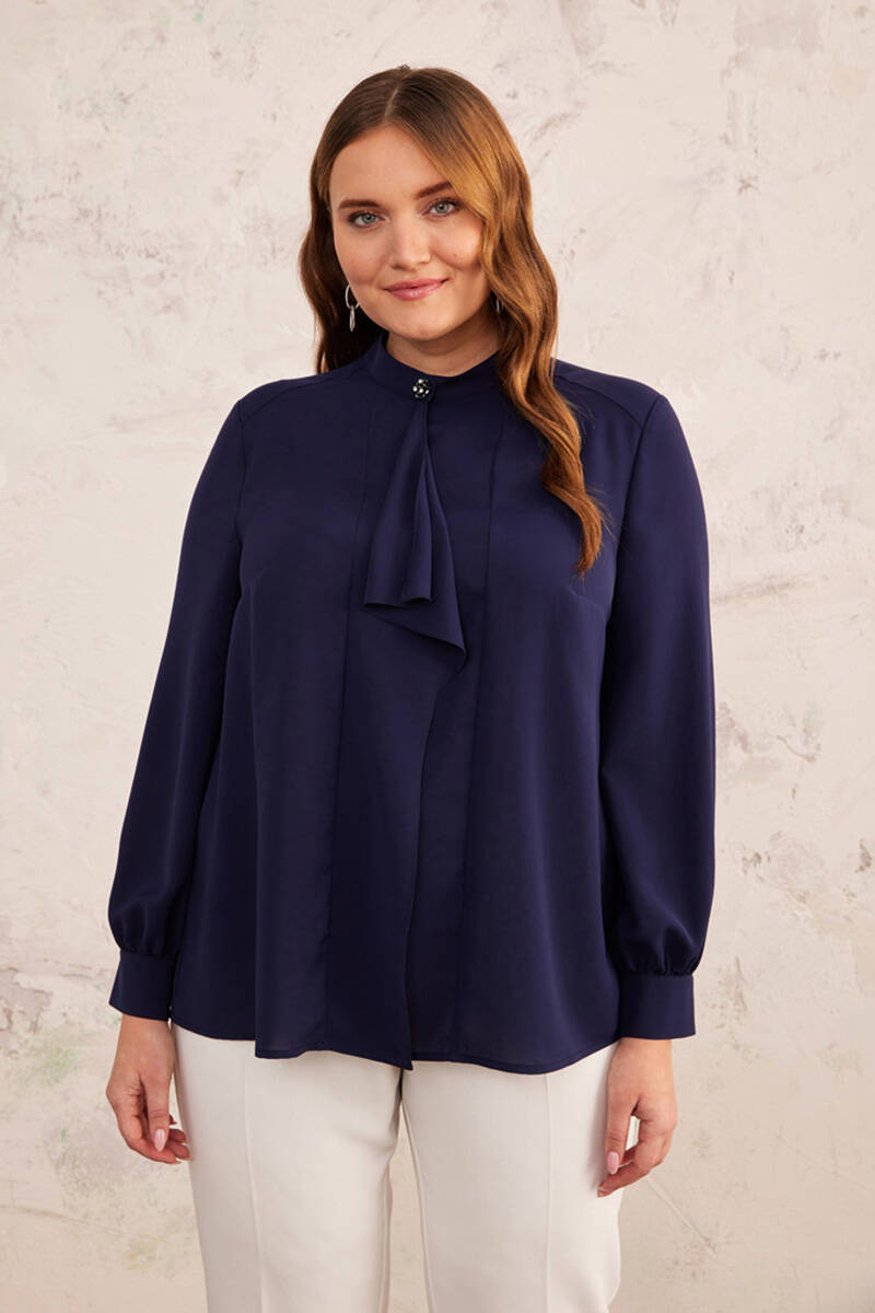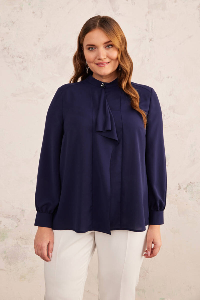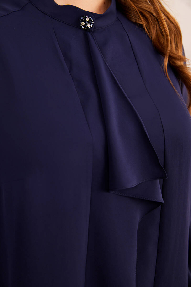 Antrasit Yaka İşlemeli Çizgili Bluz