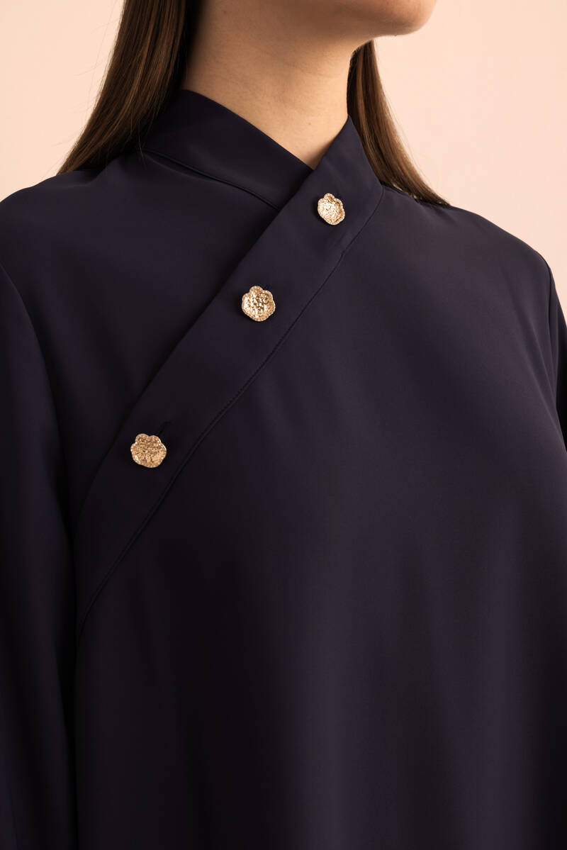 Saks Önden Apolet Detaylı Dokuma Tunik