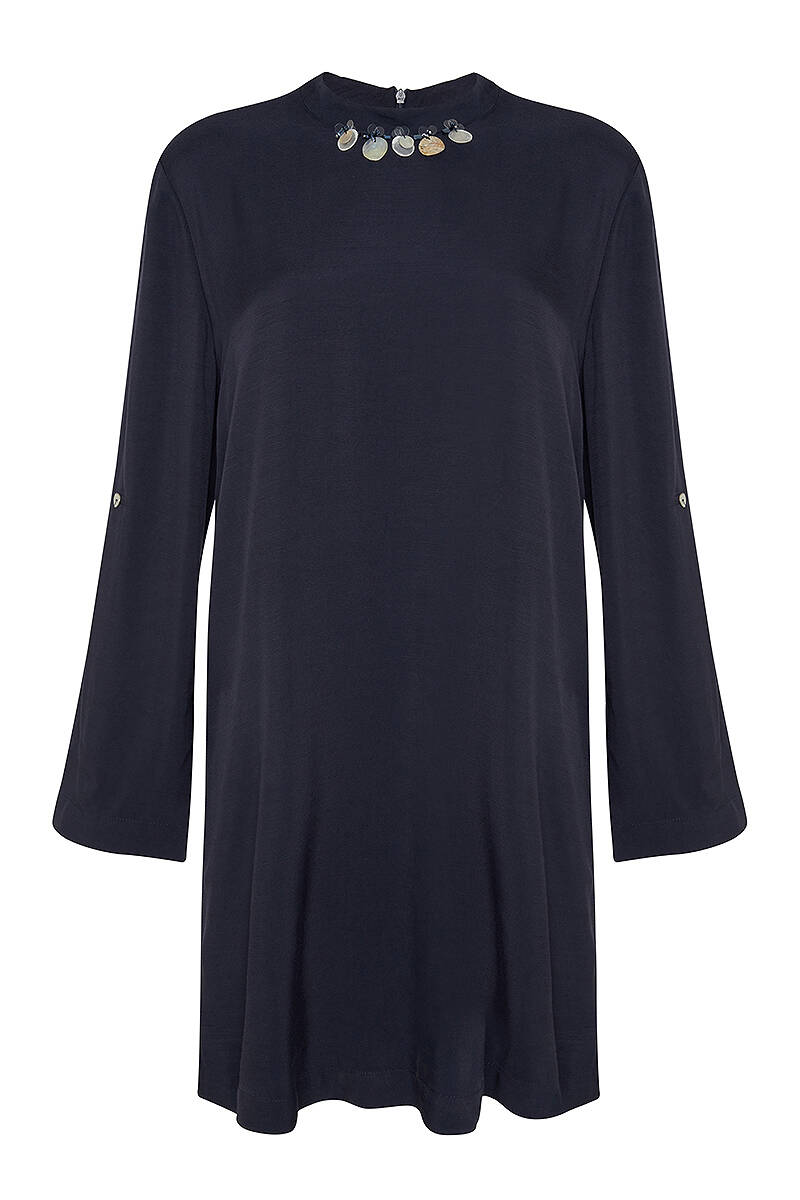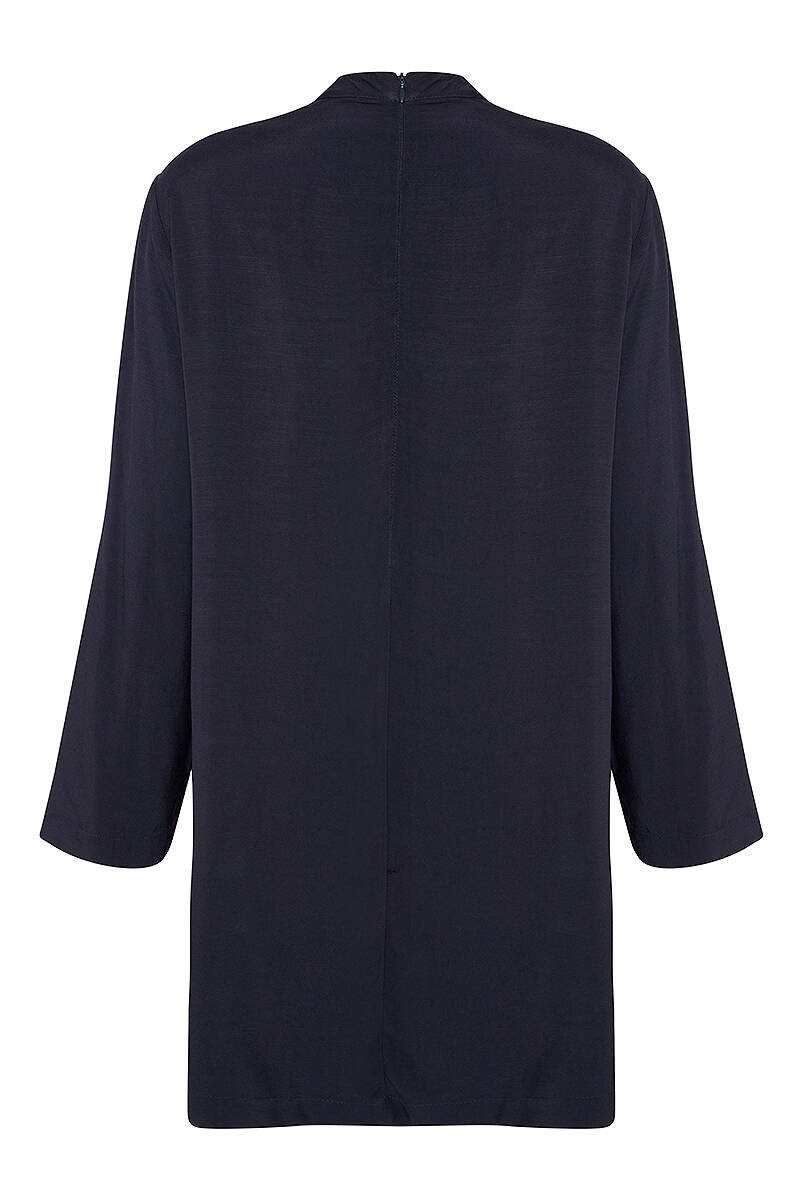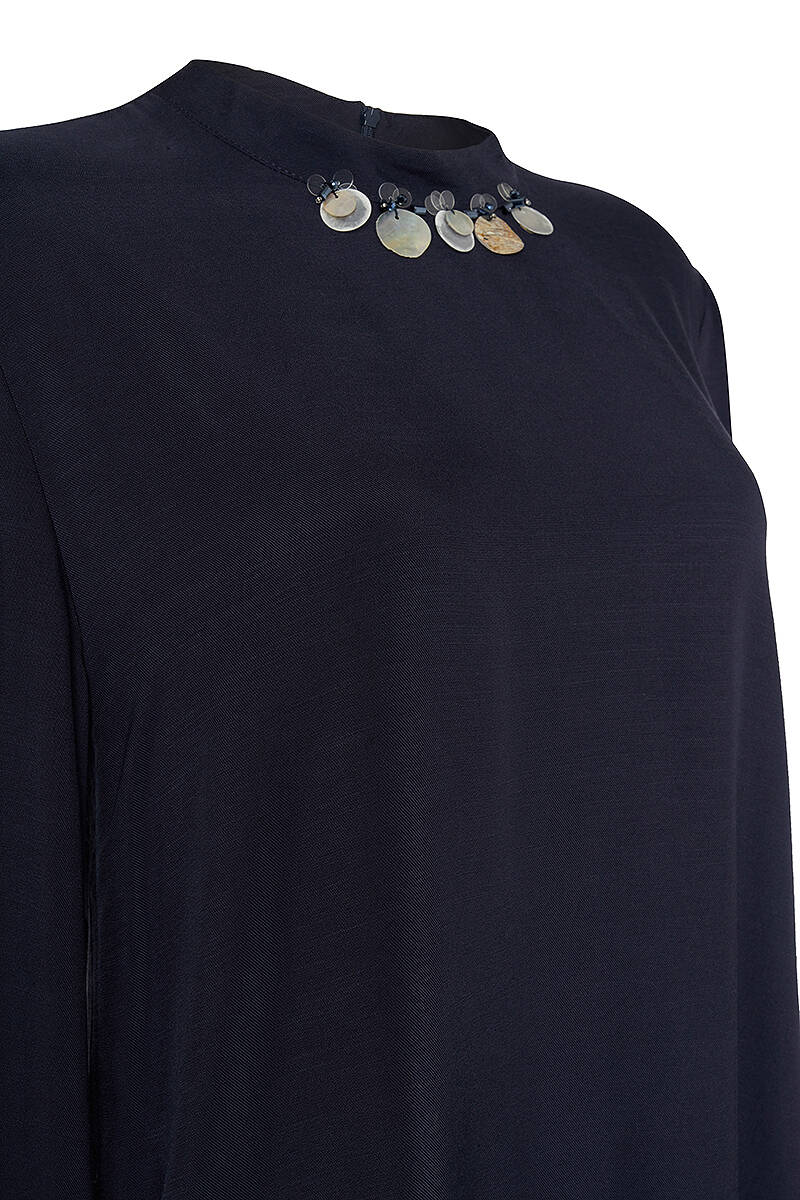 İndigo Dikiş Detaylı Hakim Yaka Tunik