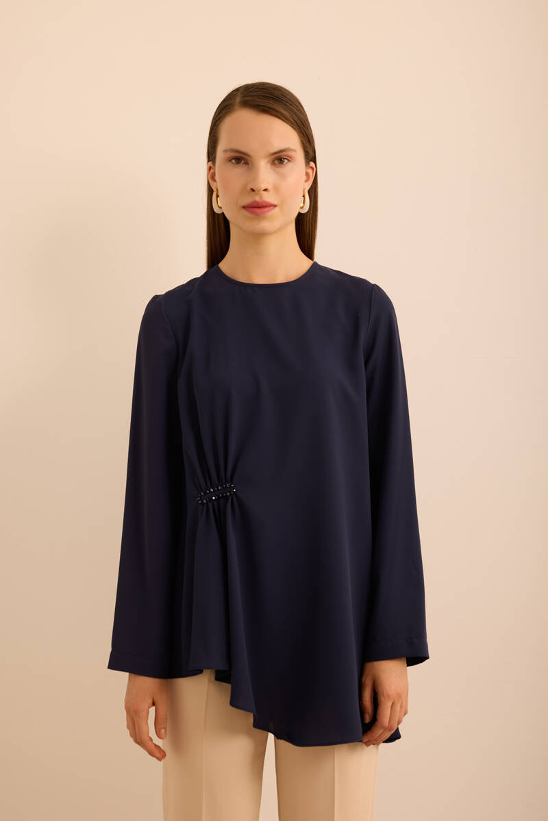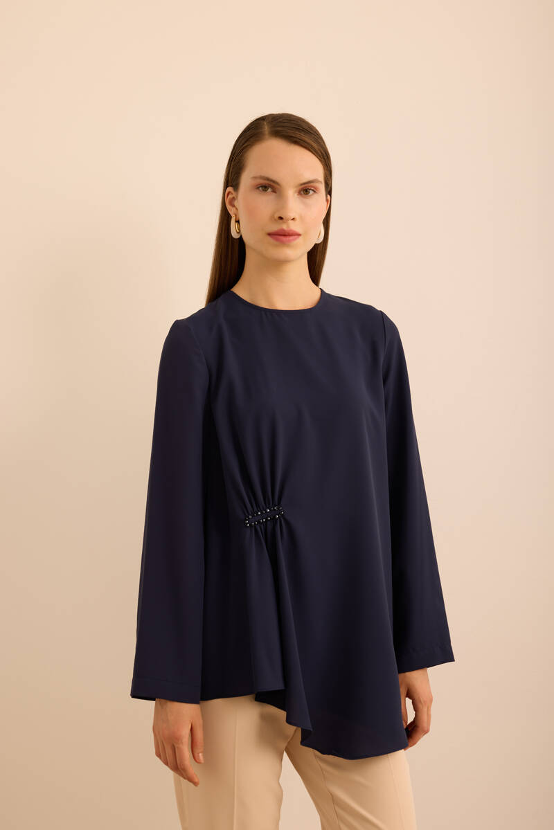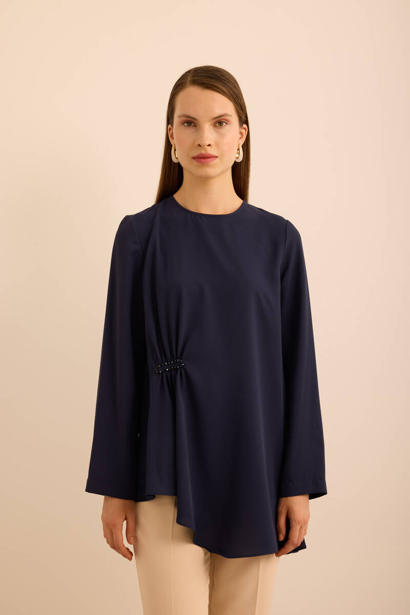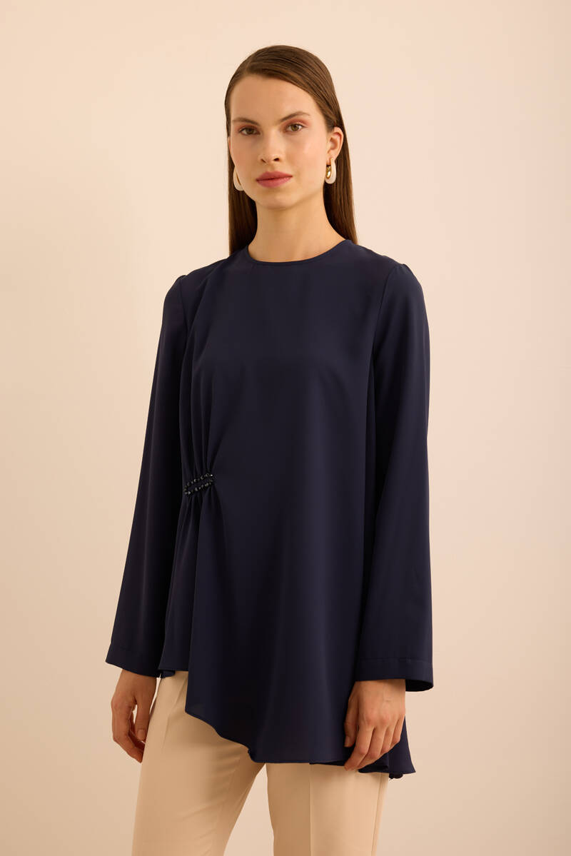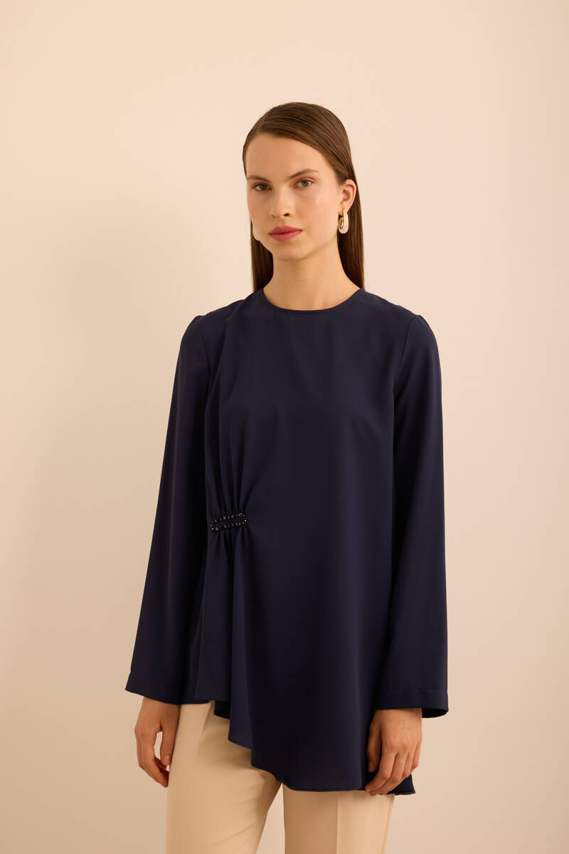 Ekru Kol Ucu Dikiş Detaylı Viscon Tunik
