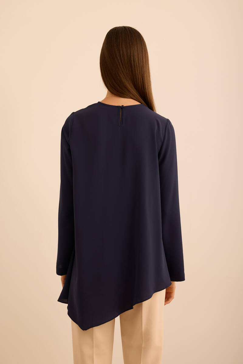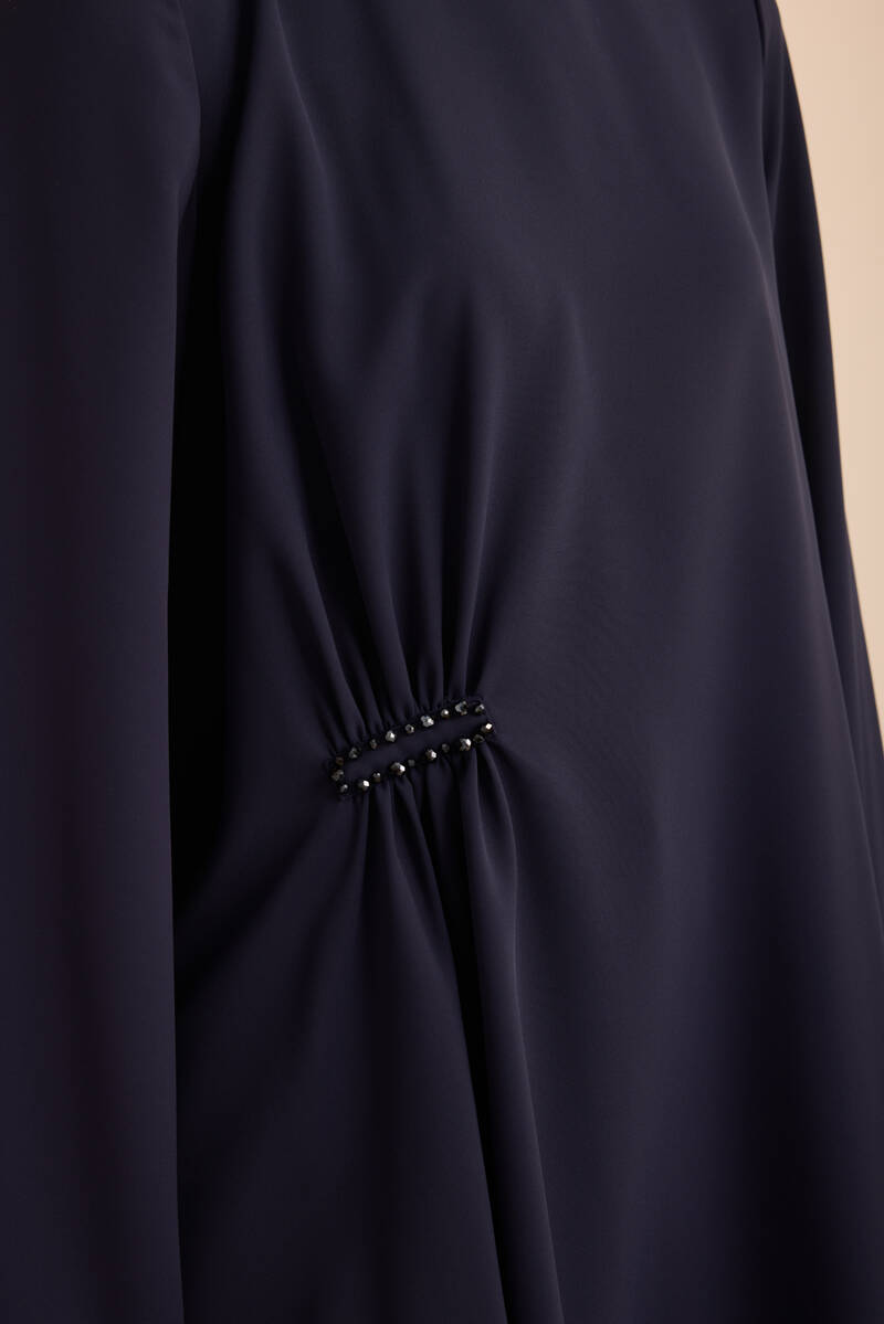 Lacivert Üst Kısmı Volan Parça Hareketli Dökümlü Elbise