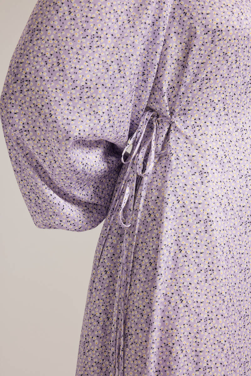 Turkuaz Çiçek Desenli Beli Bağlama Detaylı Elbise