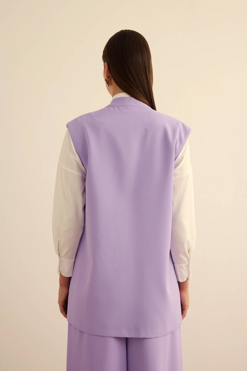 Lila Önden Çıtçıtlı Dokuma Yelek