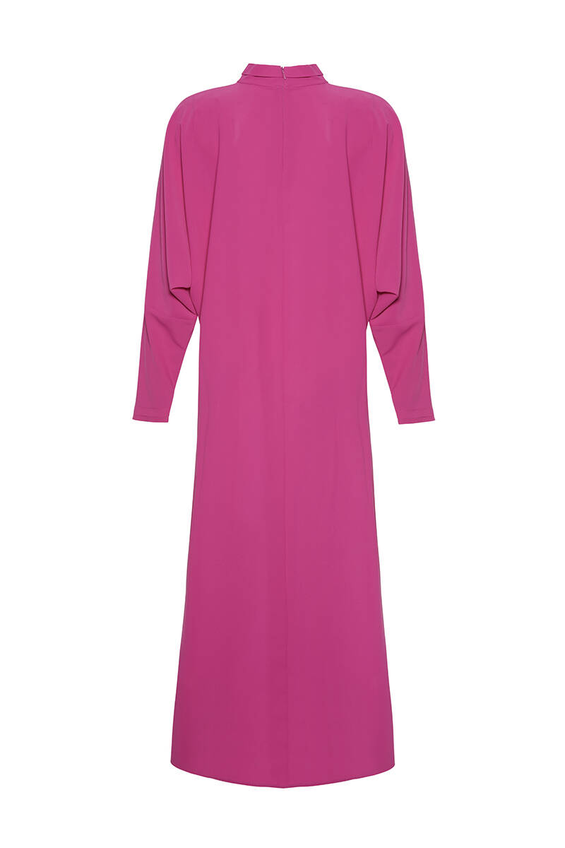 Fuşya Hacimli Cotton Brode Elbise