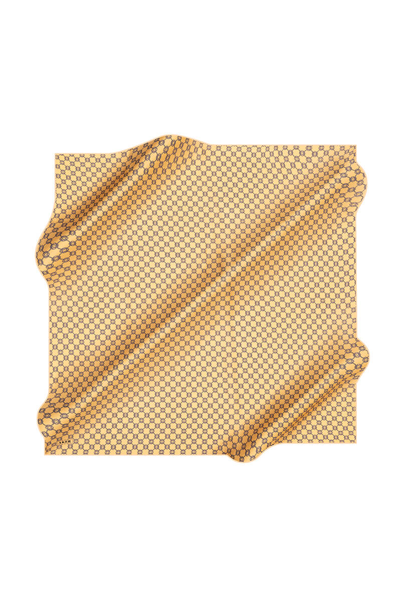 Logo Desenli 90X90 İpek Krep Saten Eşarp