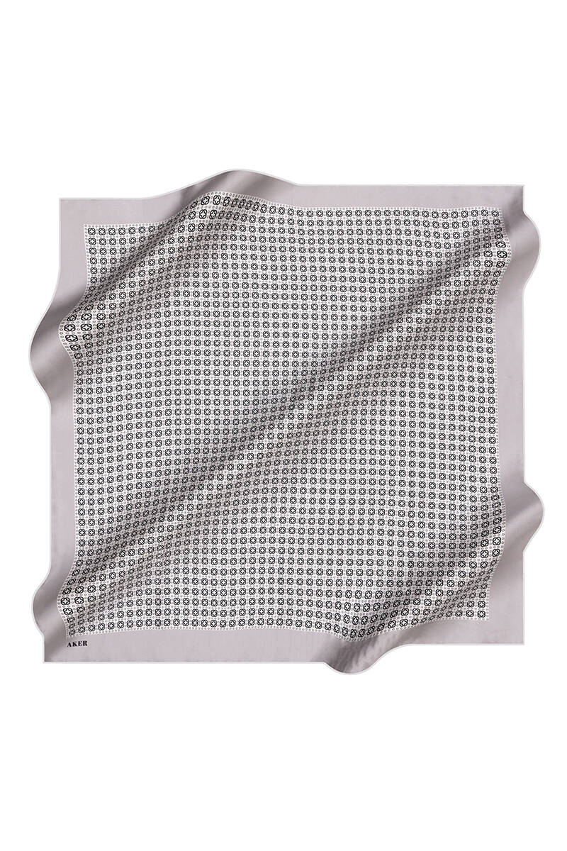 Geometrik Desenli 90X90 İpek Krep Saten Eşarp