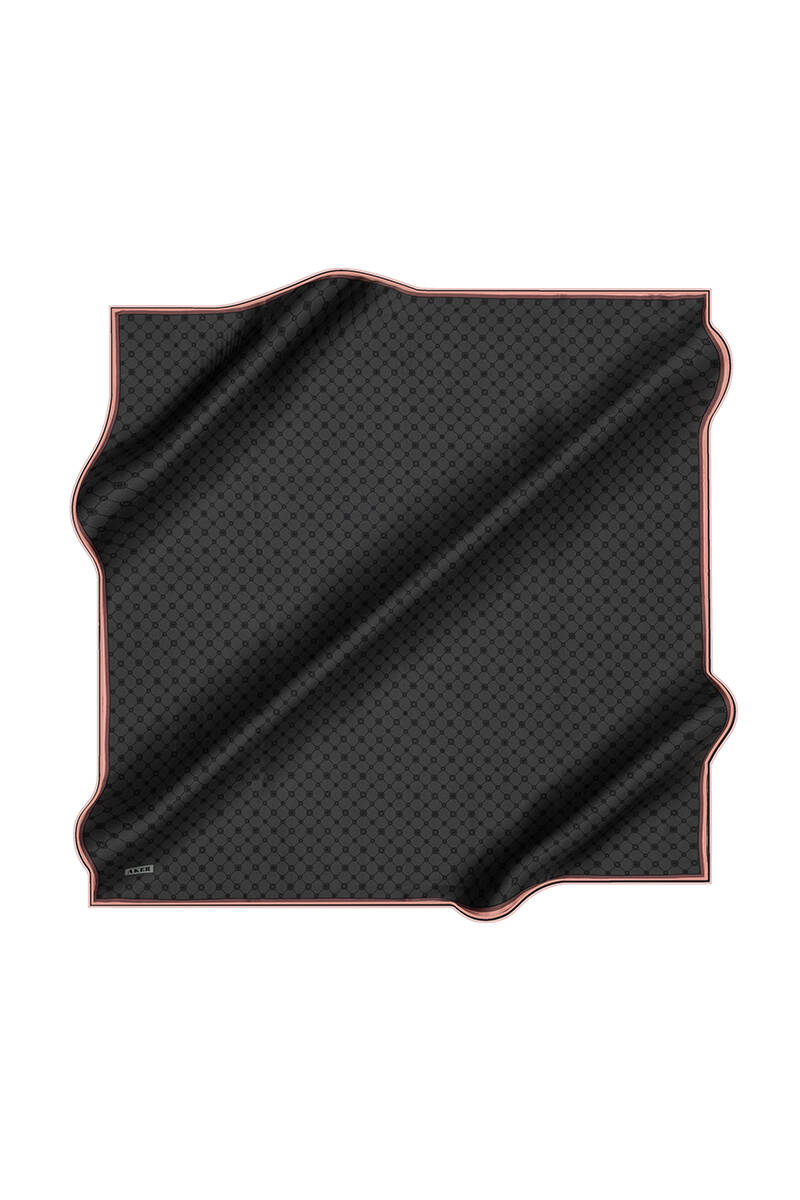 Logo Desenli 90X90 İpek Krep Saten Eşarp