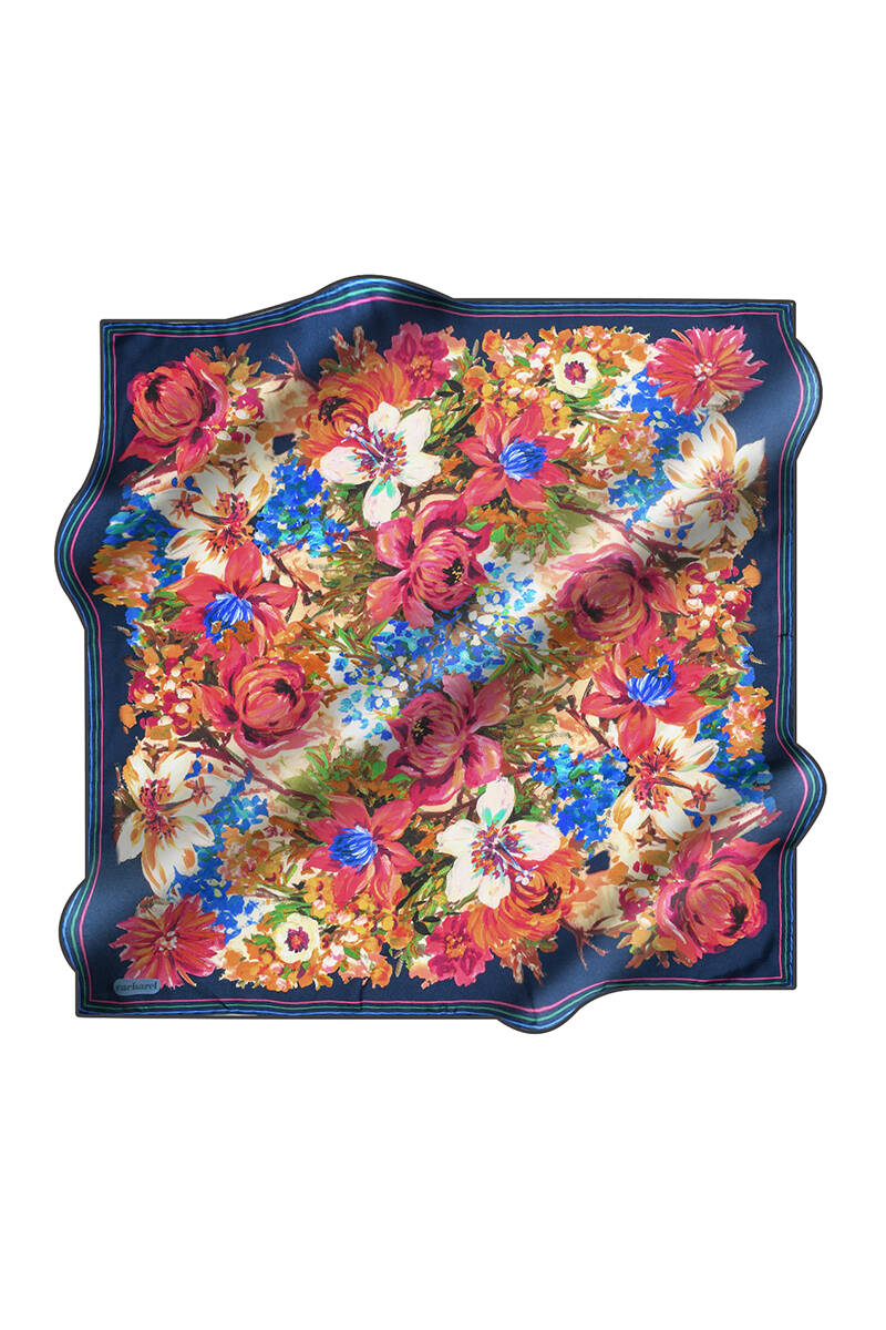 Çiçek Desenli İpek Twill Eşarp