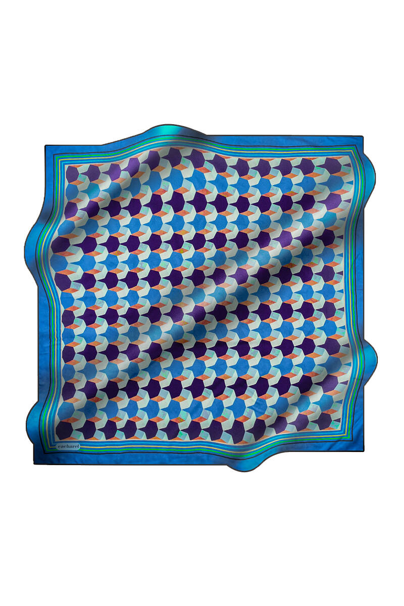 Geometrik Desenli İpek Twill Eşarp