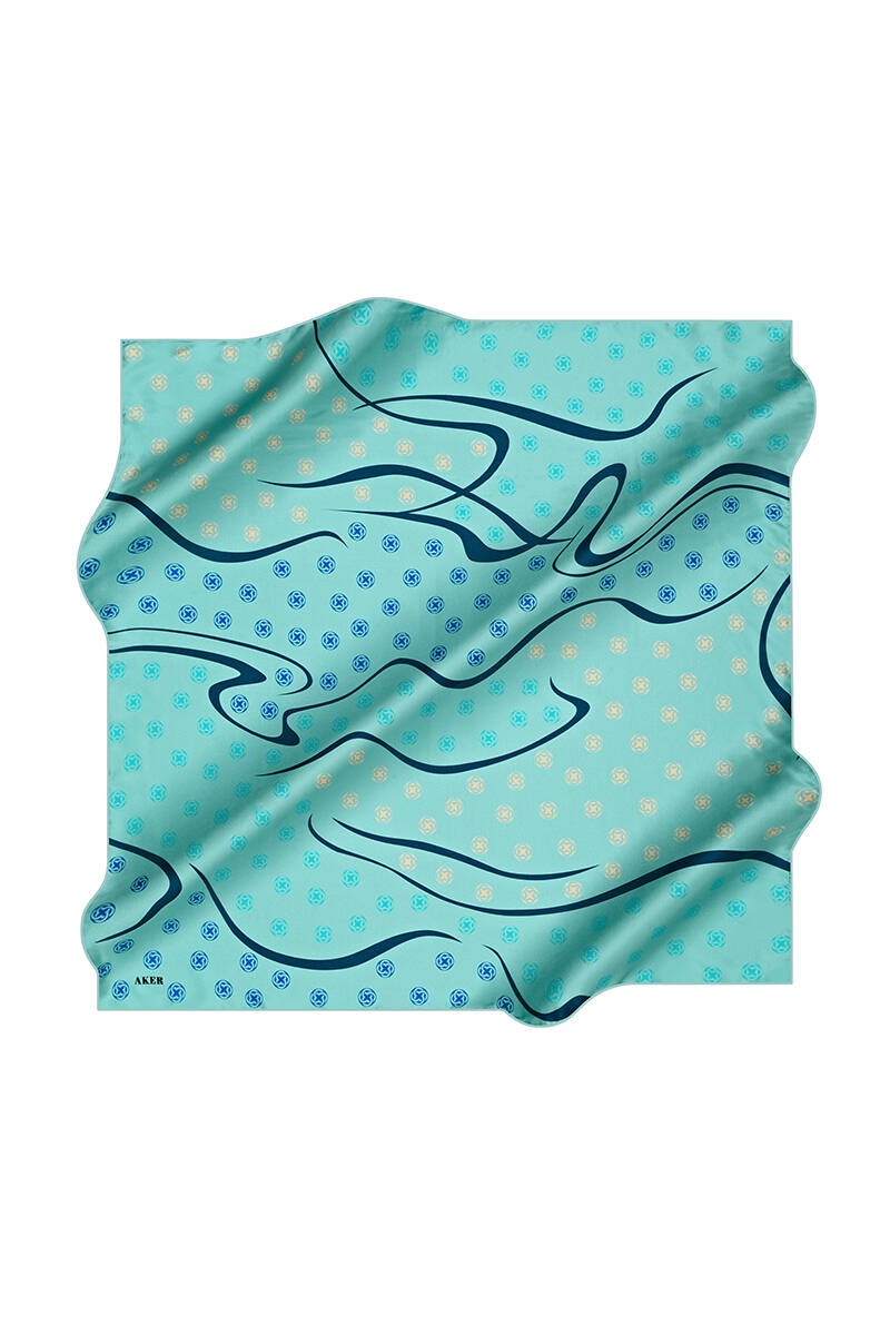 Logo Desenli 90X90 İpek Krep Saten Eşarp