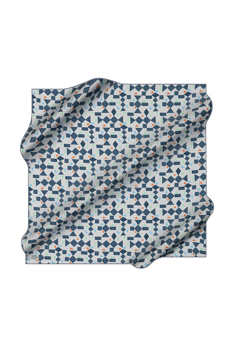 Geometrik Desenli 90X90 İpek Krep Saten Eşarp