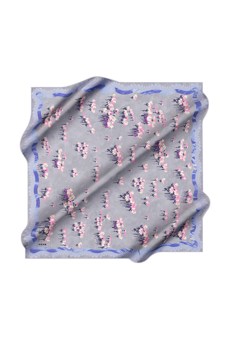 Çiçek Desenli 90X90 İpek Krep Saten Eşarp