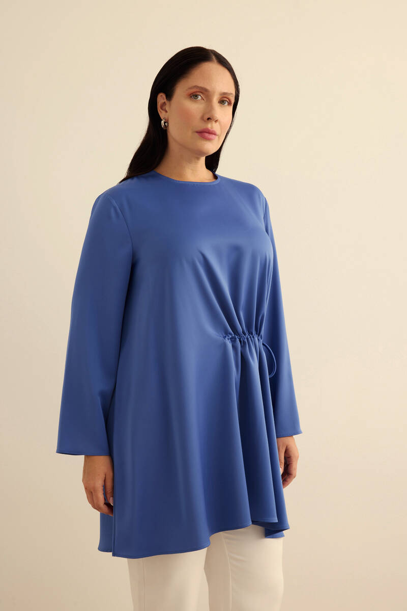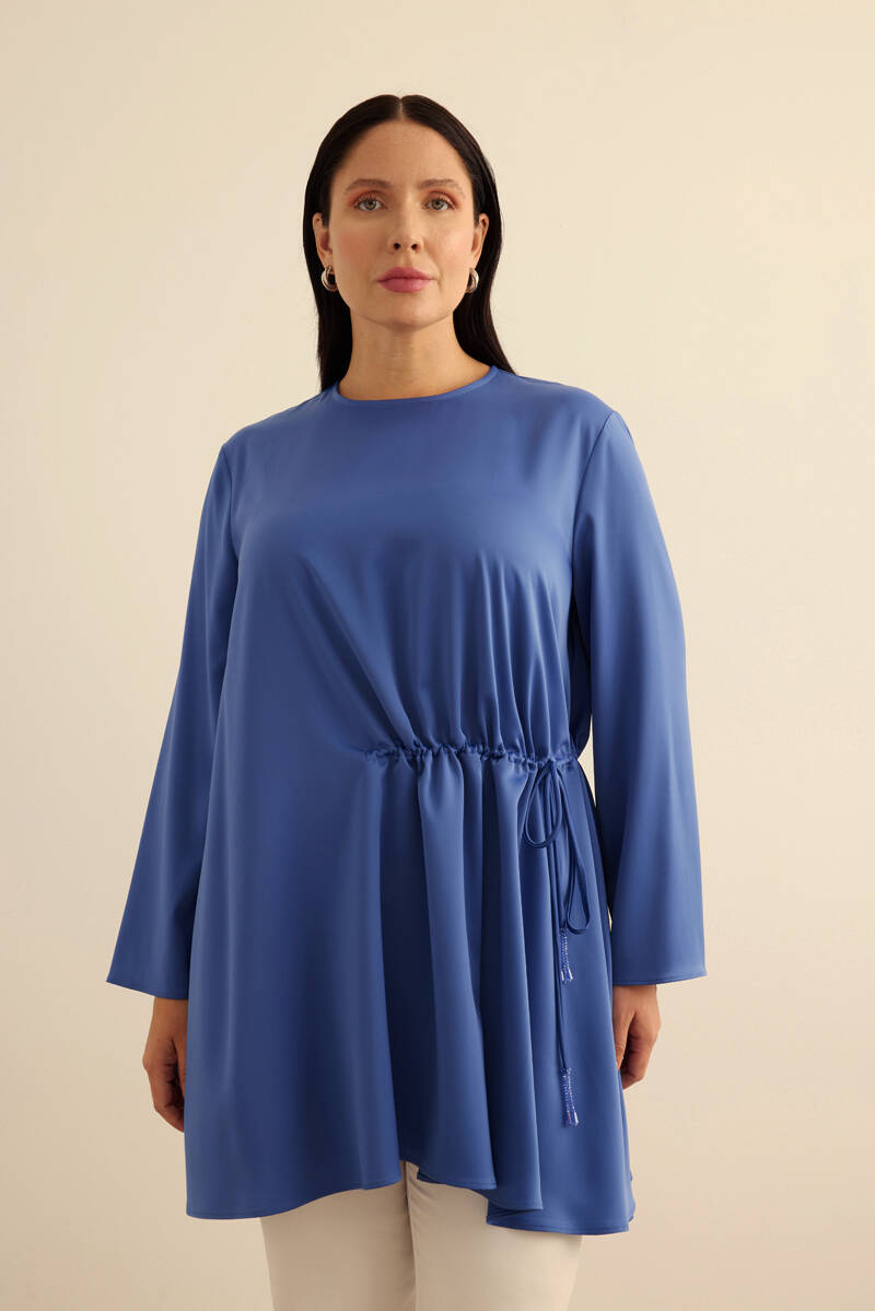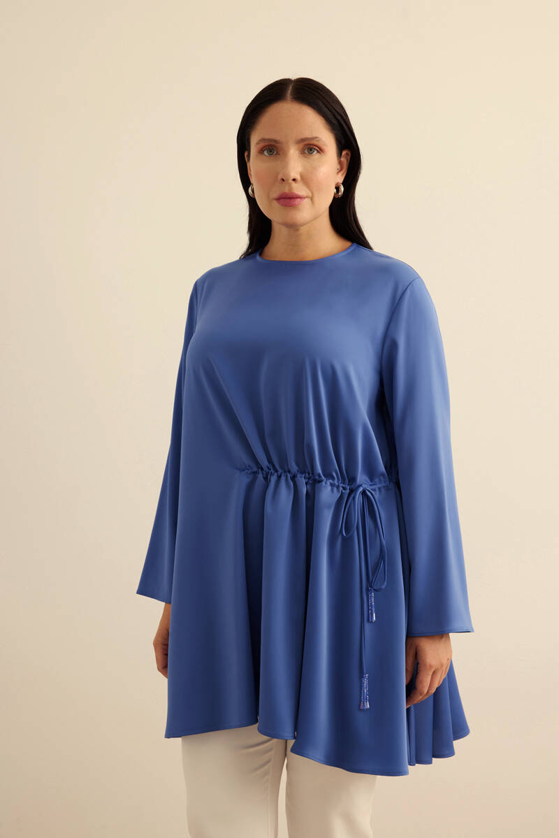 Mavi Kemeri İşlemeli Dökümlü Tunik