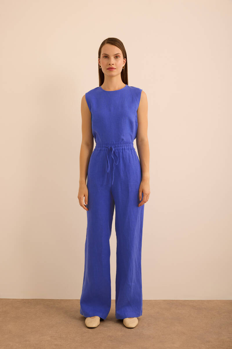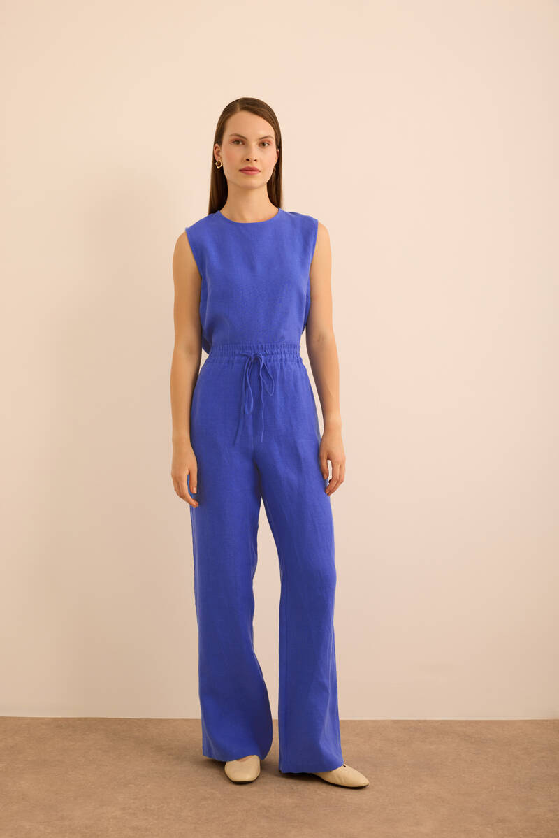 Mavi Bisiklet Yaka Kolsuz Keten Bluz