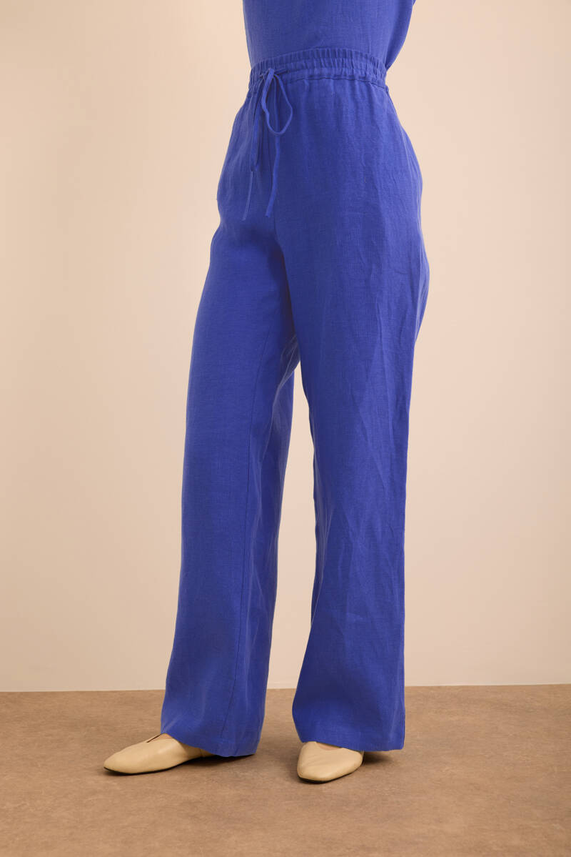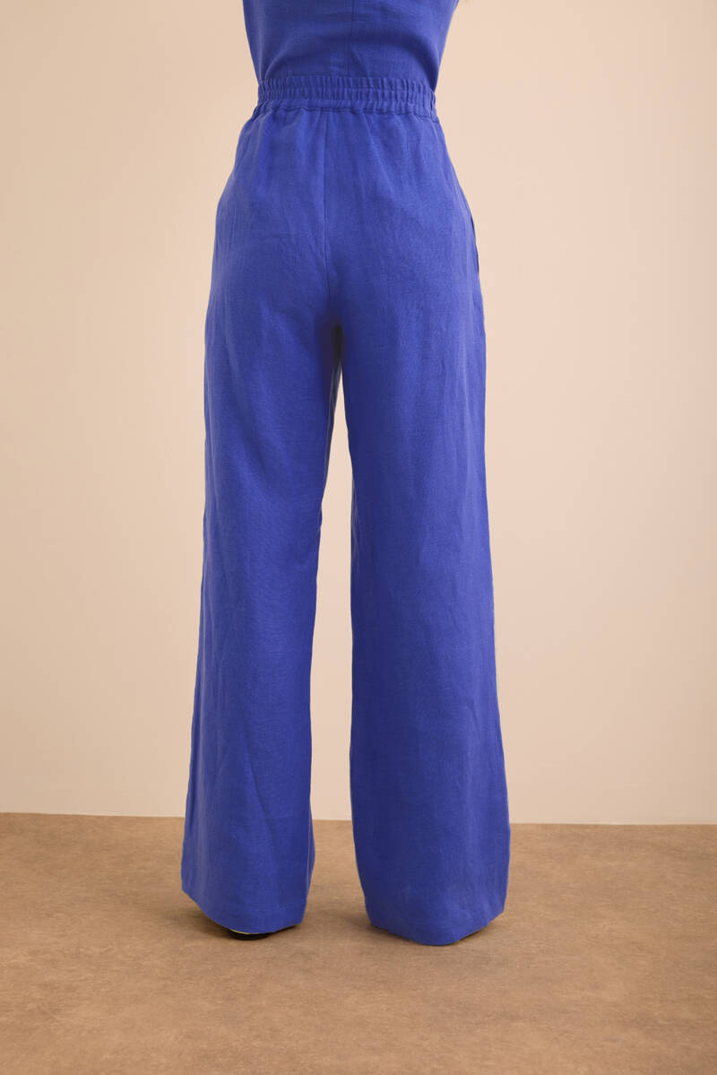 Mavi Çizgi Desenli , Beli Lastikli Cotton Pantolon