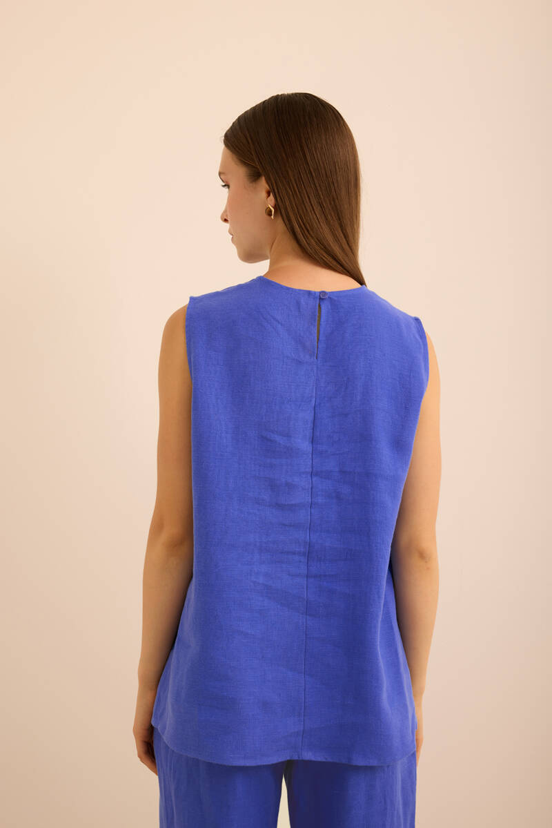 Saks Ön Göğüs Kısmı Pile ve Parça Detaylı Bluz