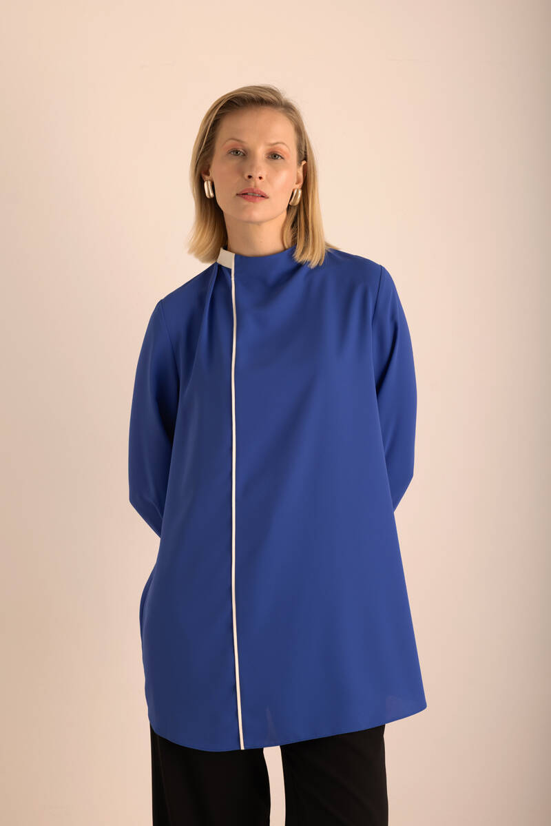 Saks Önden Apolet Detaylı Dokuma Tunik