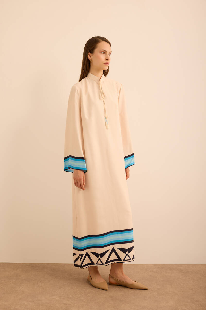 Ekru Kumaşı Püskül Yüzeyli Cotton Gömlek Elbise