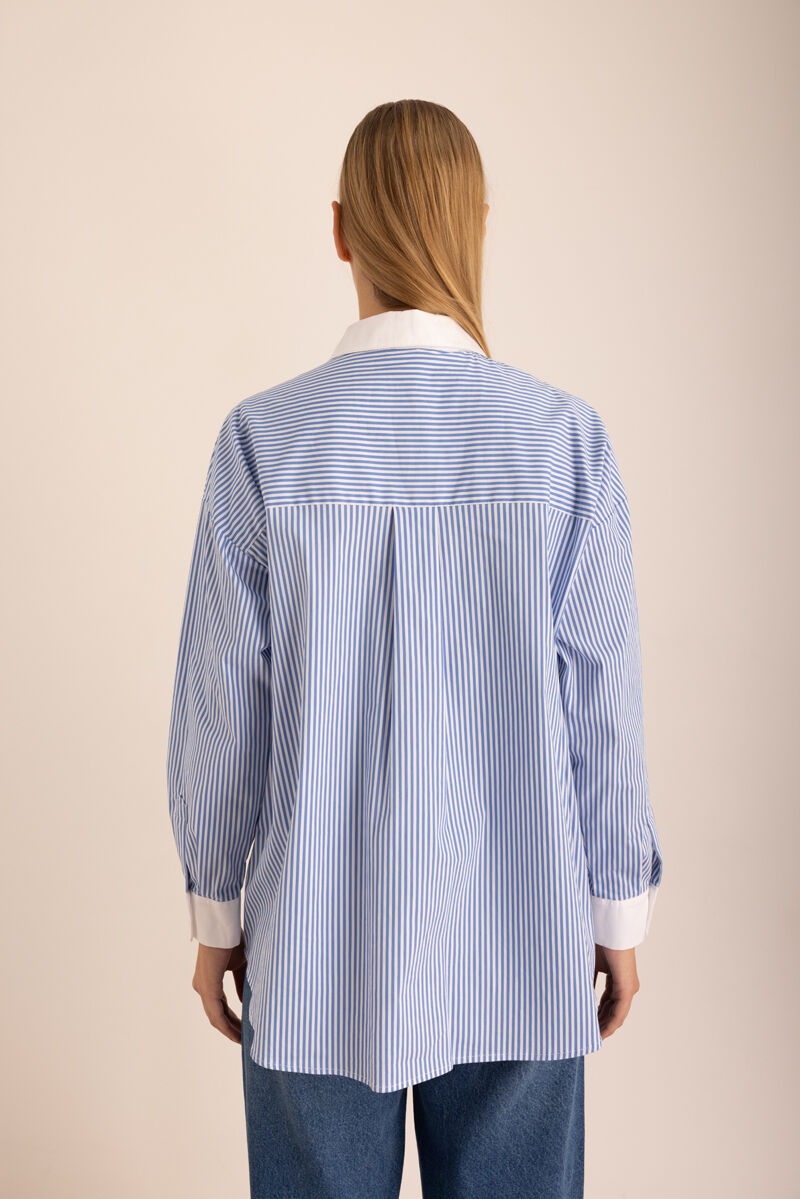 Mavi Sırtı Volan Detaylı Cotton Gömlek