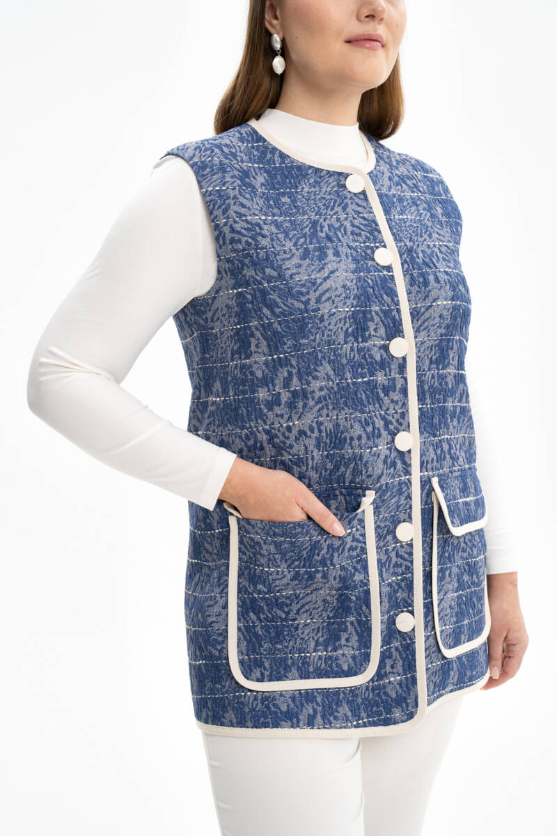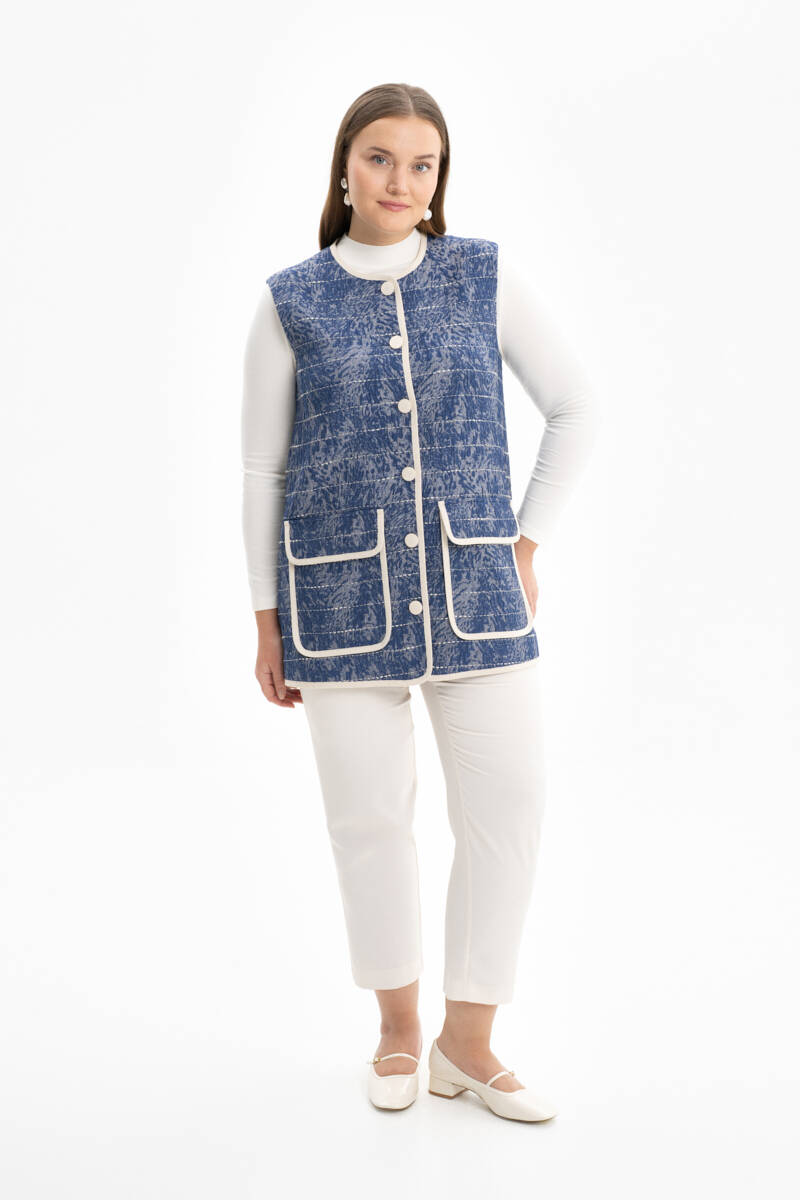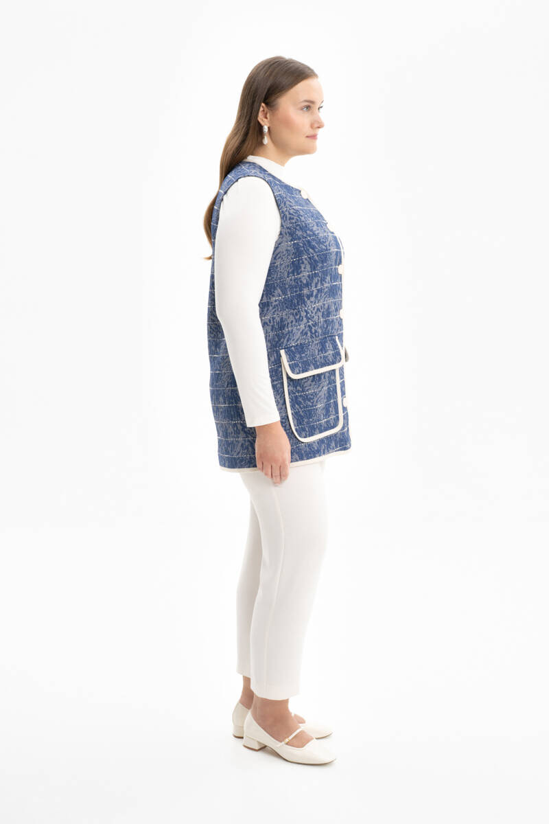 Mavi Grogren Detaylı Yelek