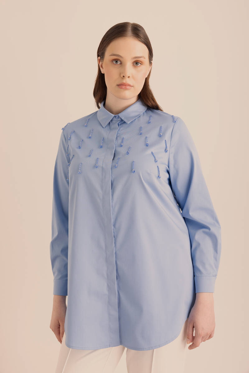 Vizon Bisiklet Yaka Kolsuz Keten Bluz