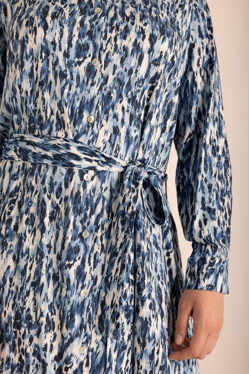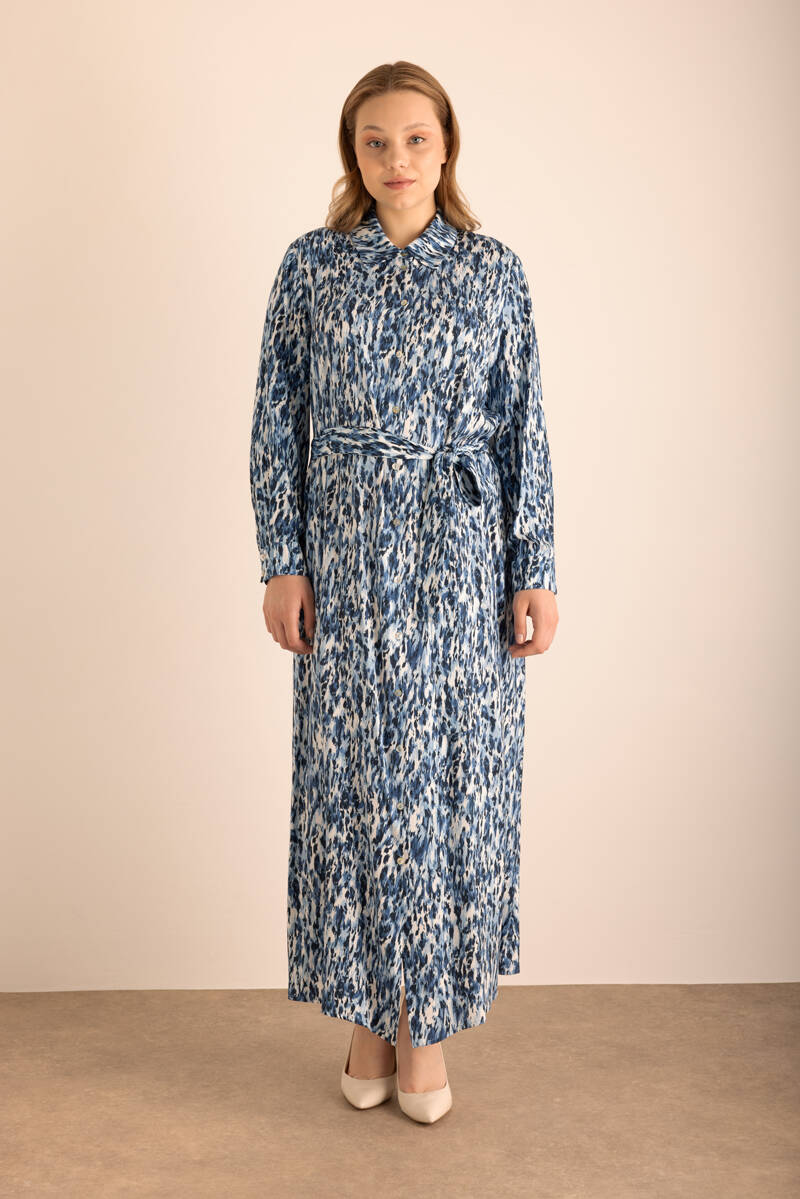 Turkuaz Geometrik Desenli Gömlek Elbise