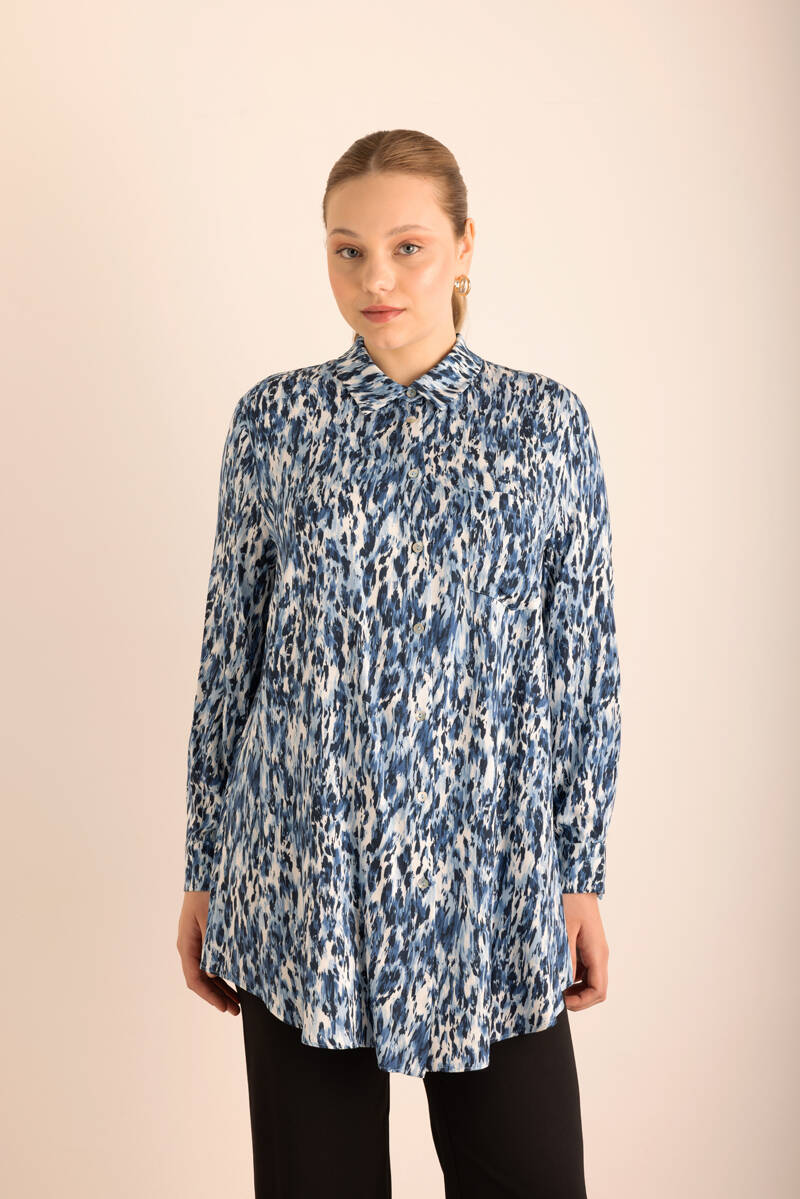 Mavi Kemeri İşlemeli Dökümlü Tunik