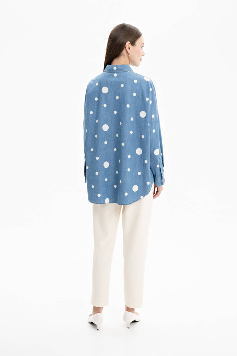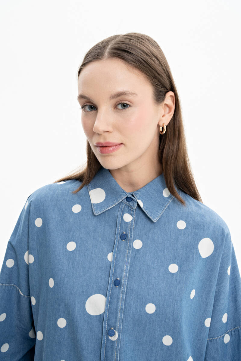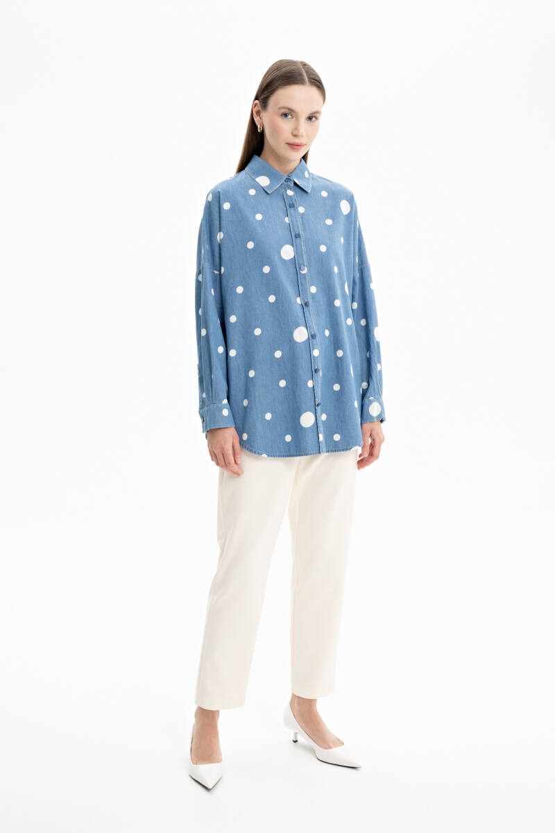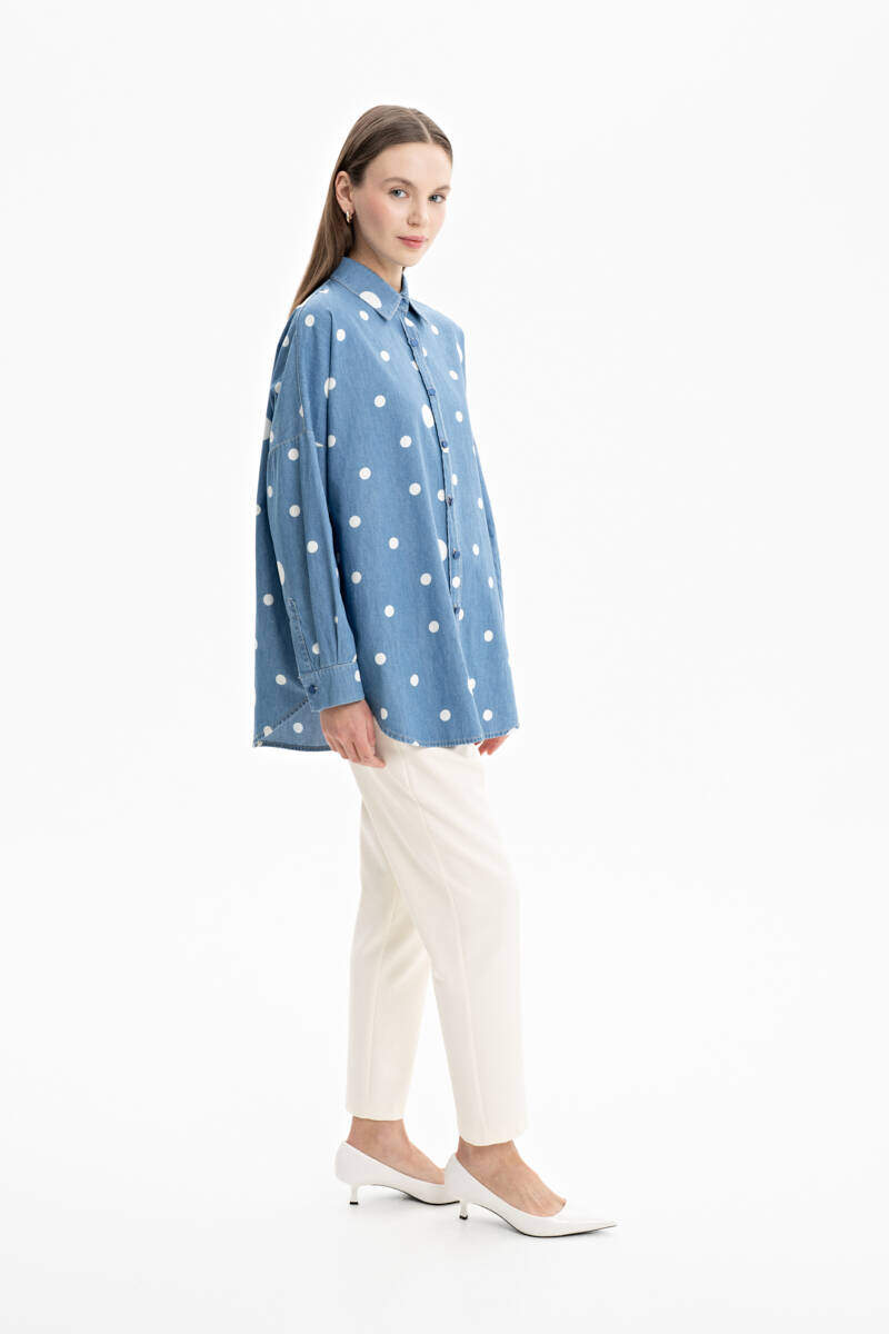 Antrasit Yaka İşlemeli Çizgili Bluz