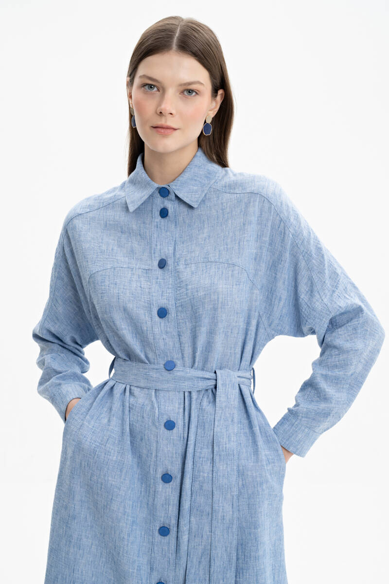 Yeşil Seyyar Kuşaklı Keten Kımono