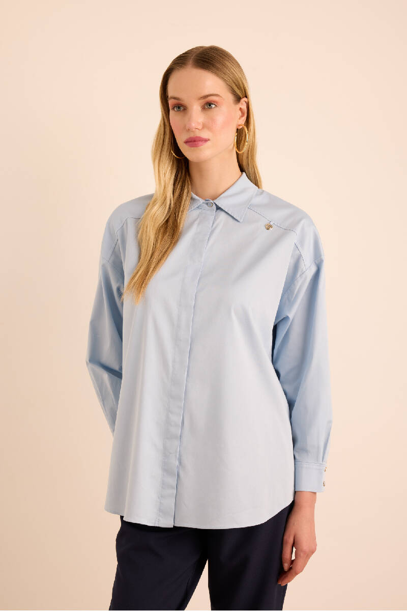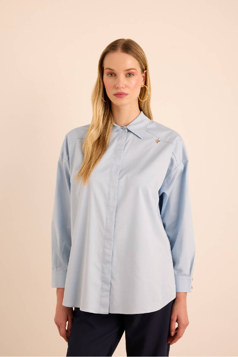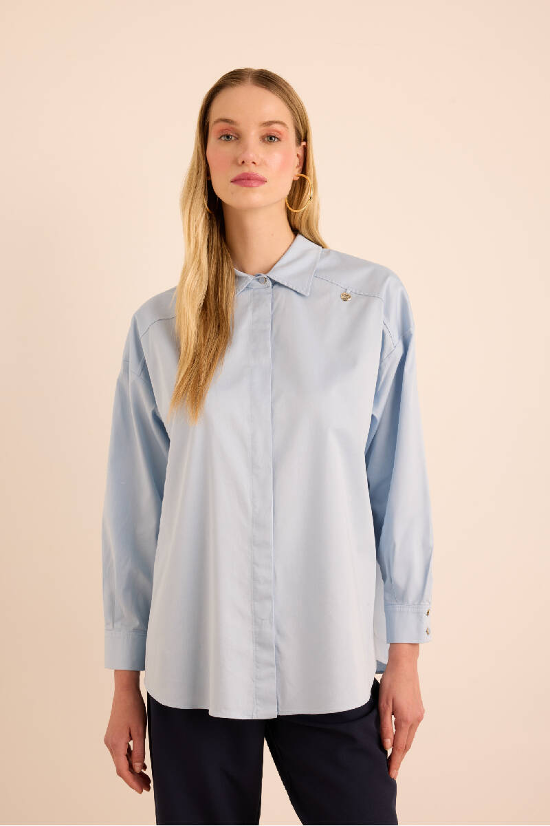 Mavi Sırtı Volan Detaylı Cotton Gömlek
