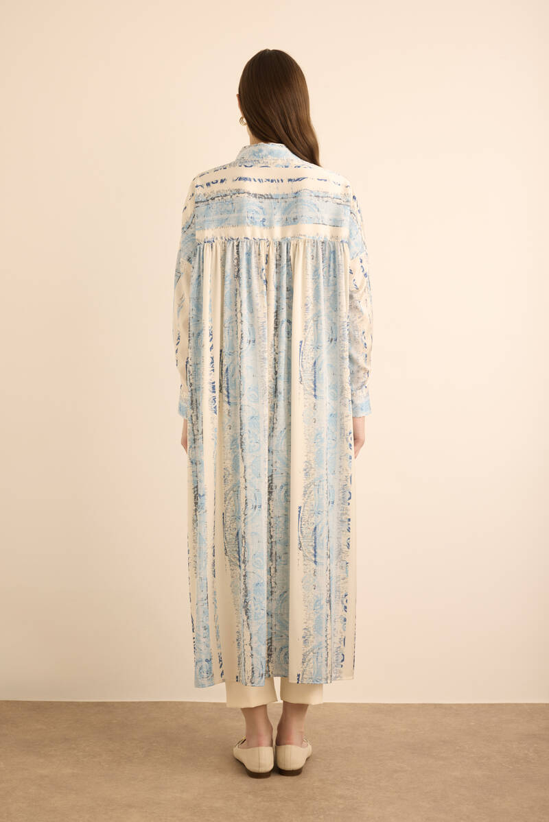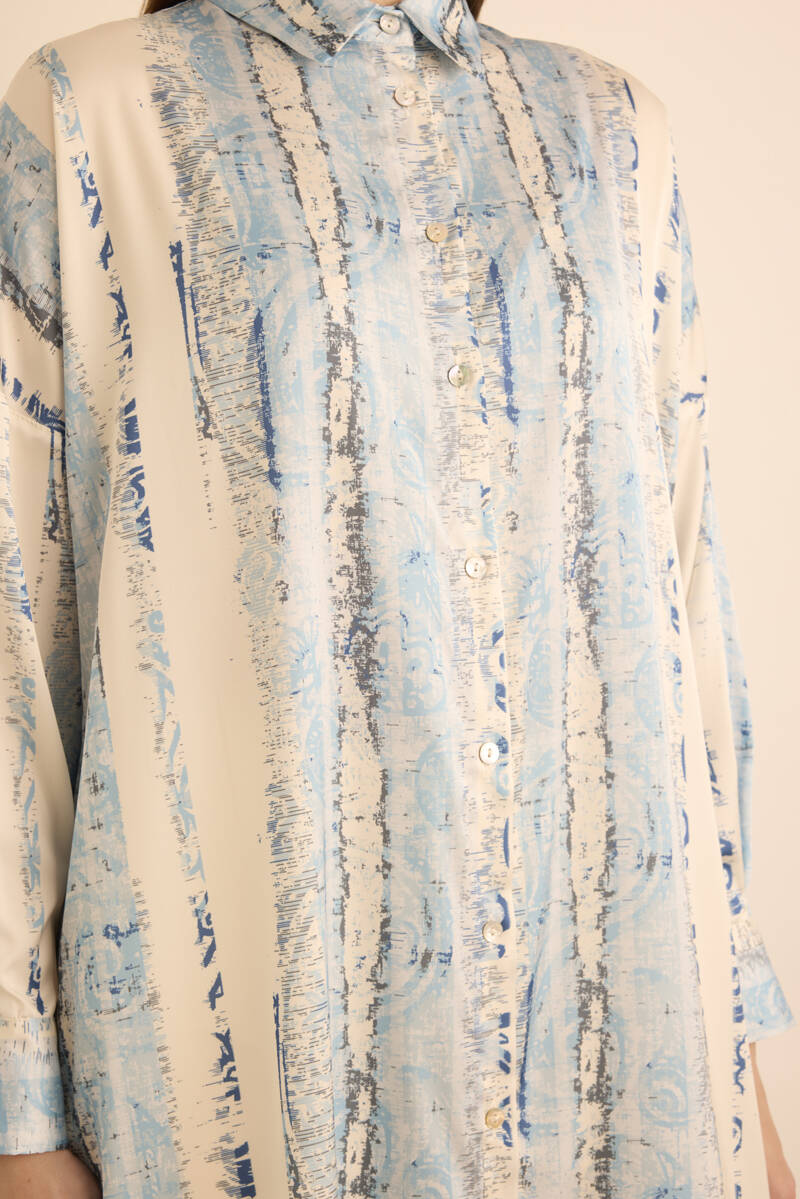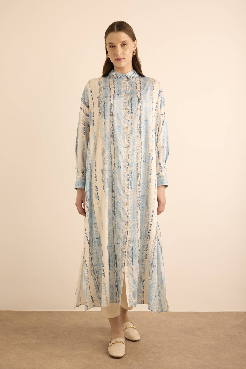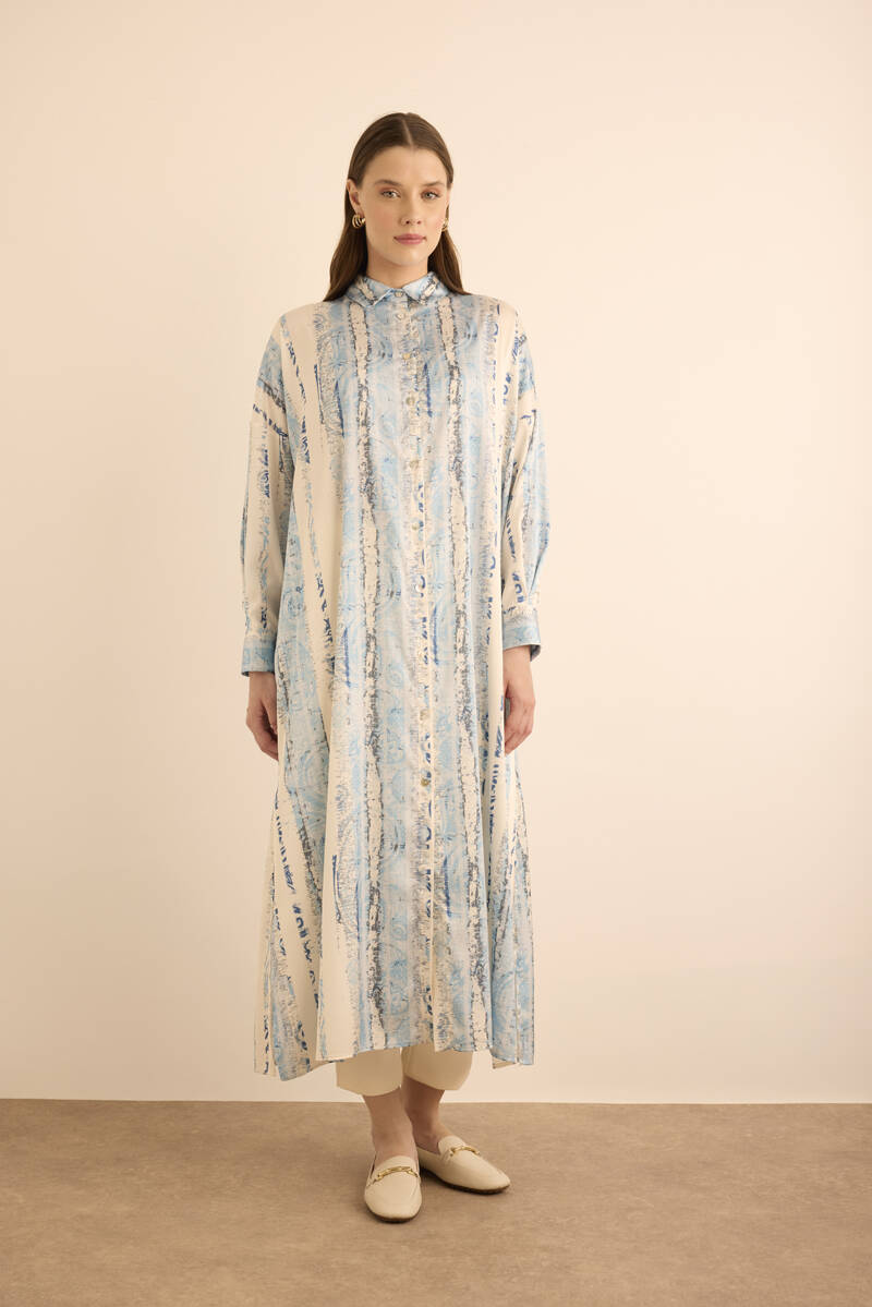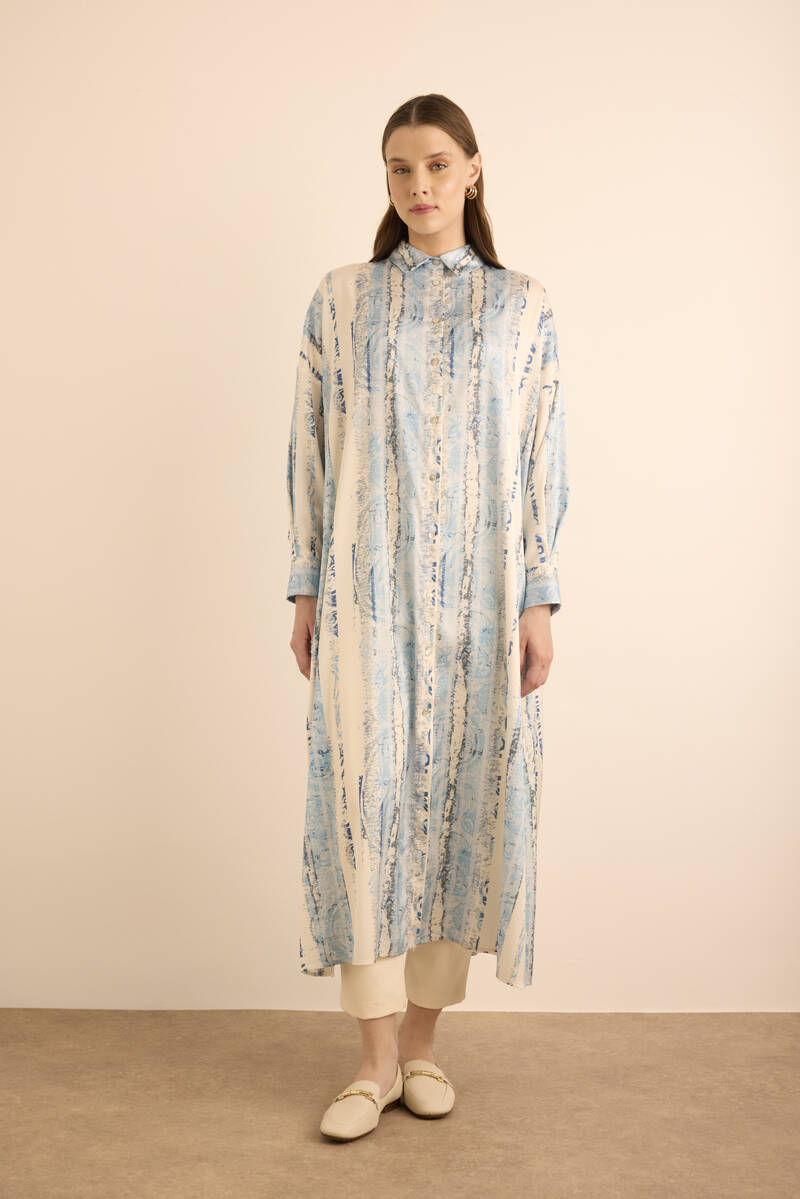 Mavi Desenli Yanları Yırtmaçlı Tunik