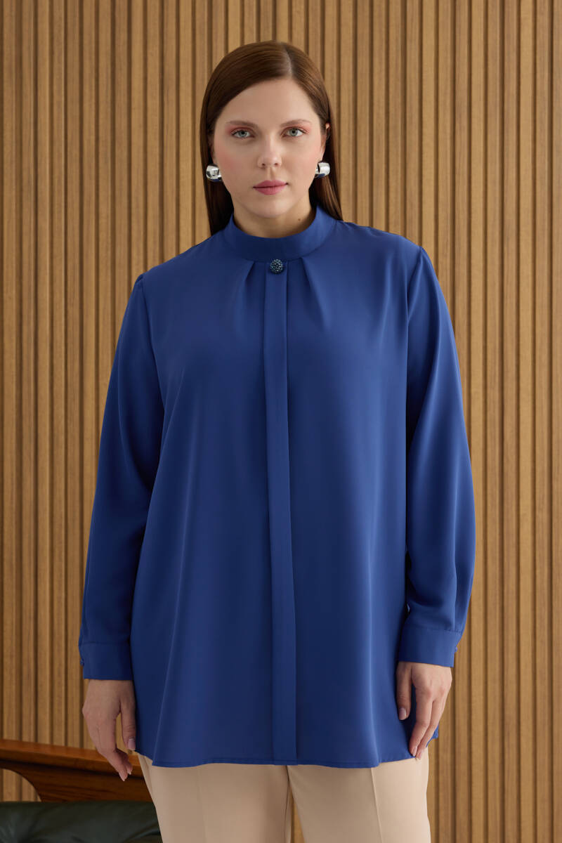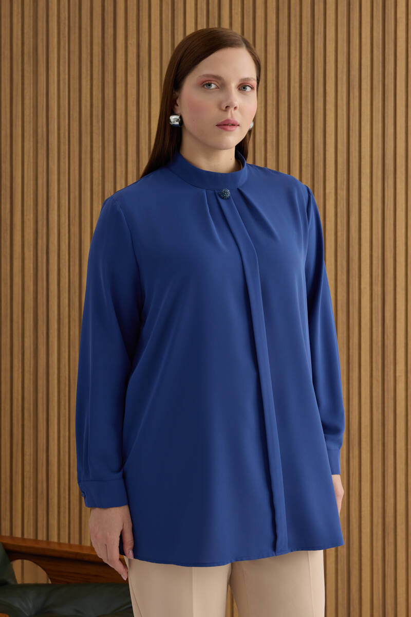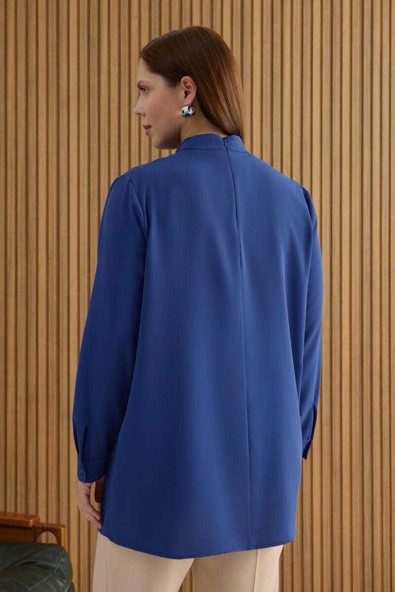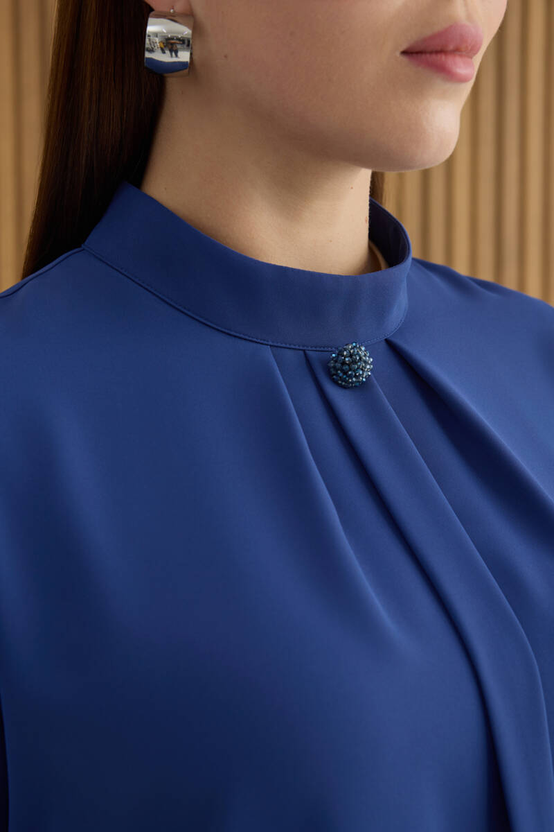 İndigo Tencel Keten Bluz
