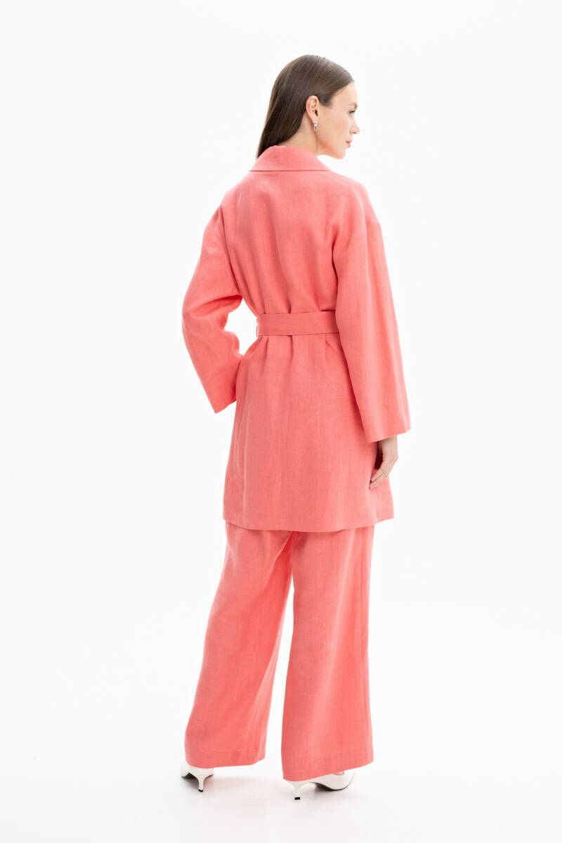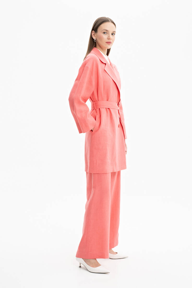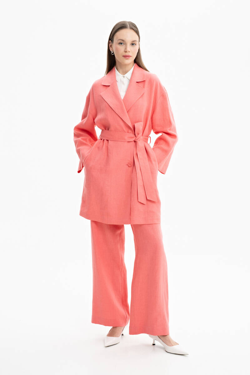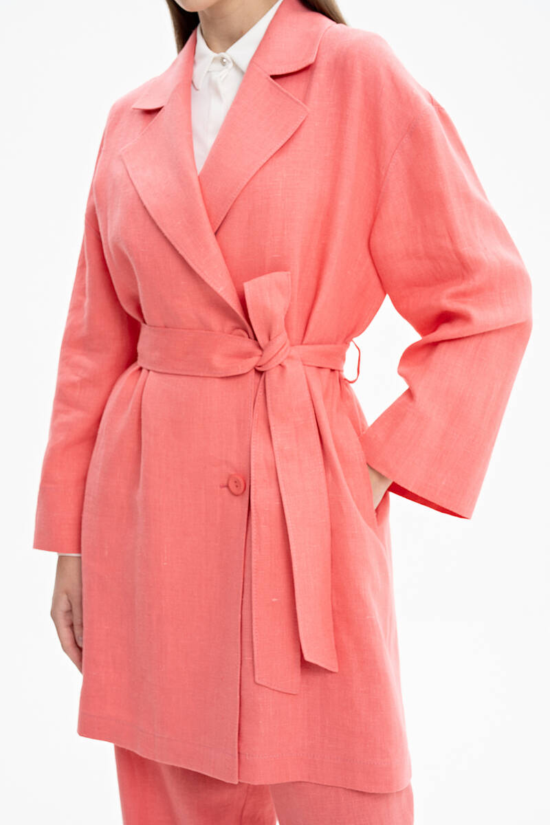 İndigo Belden Kuşaklı Keten Ceket