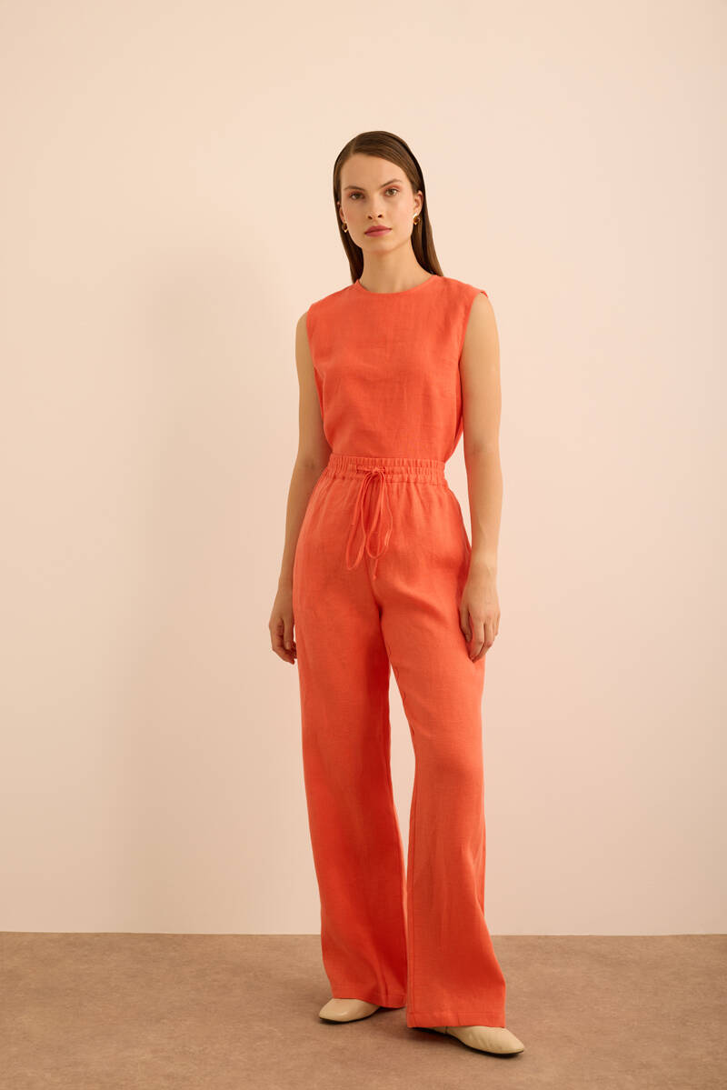 Mercan Bisiklet Yaka Kolsuz Keten Bluz