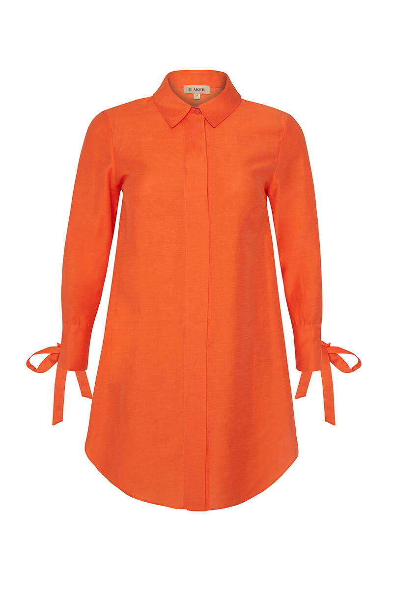 Mercan Kuşgözlü Keten Gömlek Tunik