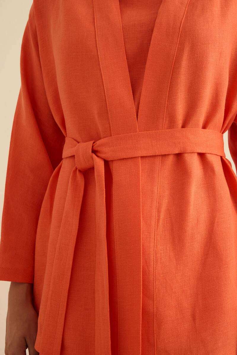 Yeşil Seyyar Kuşaklı Keten Kımono
