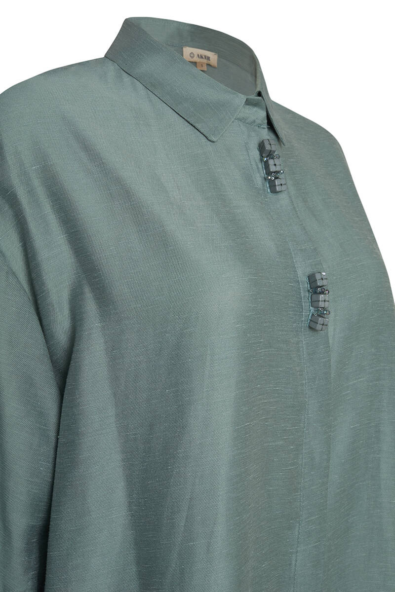 Mint Rahat Kesim İşlemeli Keten Tunik