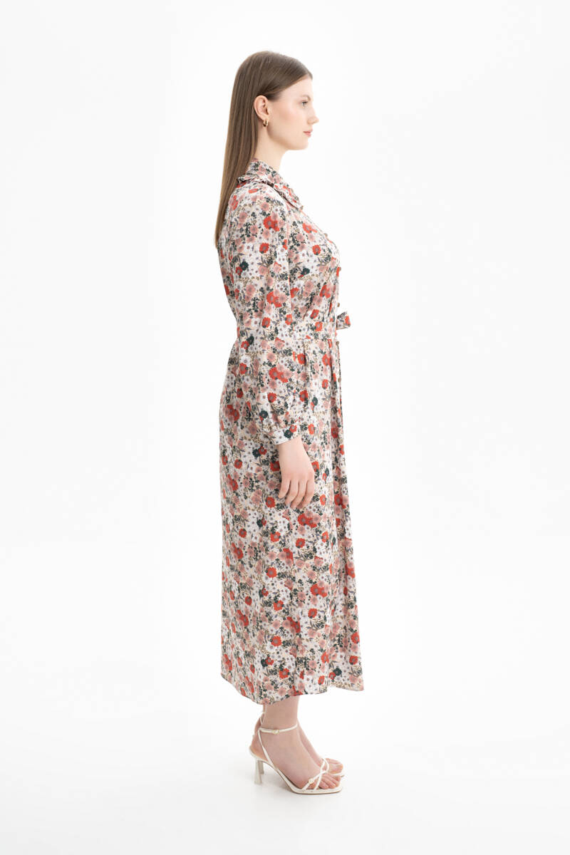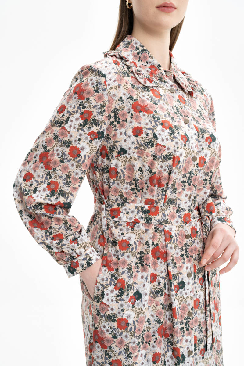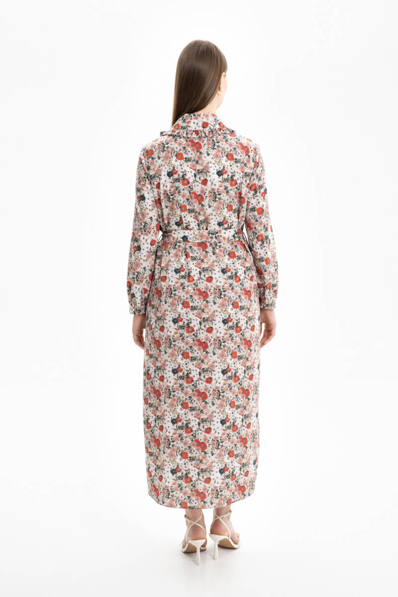 Mint Yakası Fırfır Detaylı Desenli Elbise