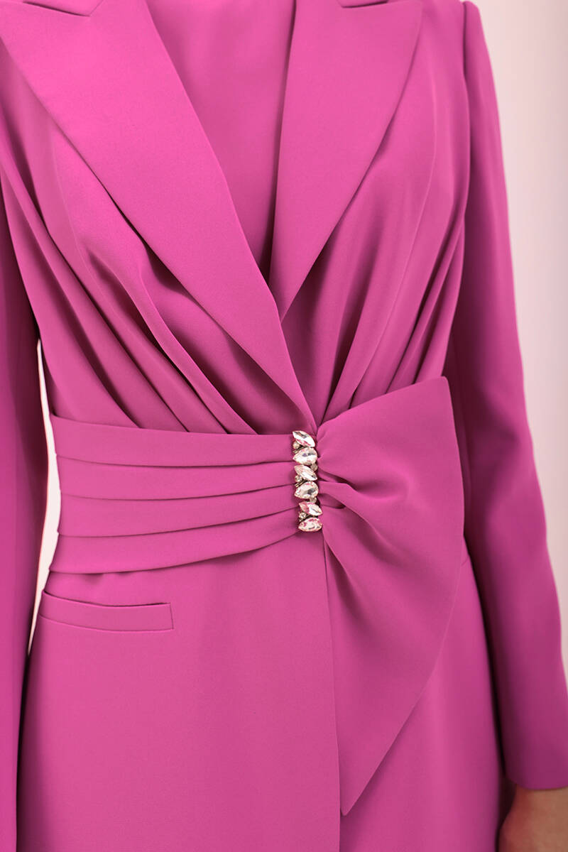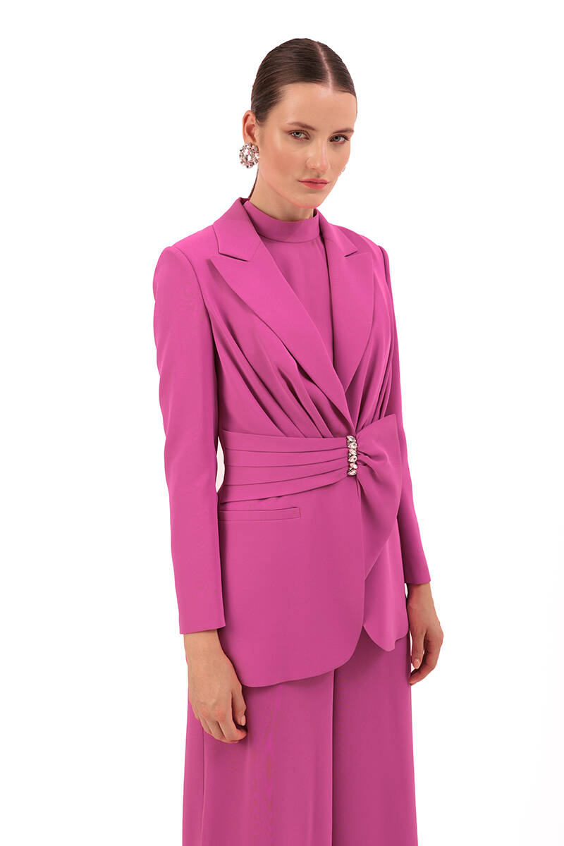 Mercan Belden Kuşaklı Keten Ceket