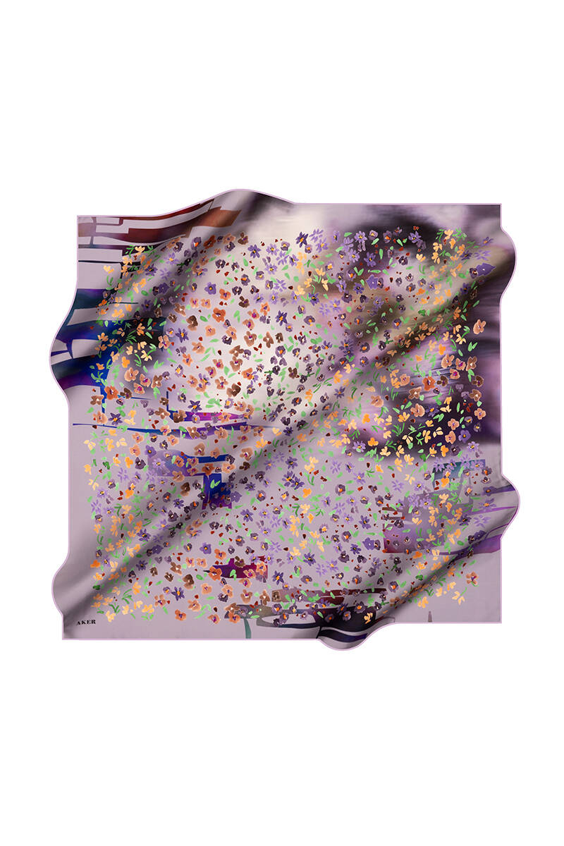 Çiçek Desenli 90X90 İpek Krep Saten Eşarp