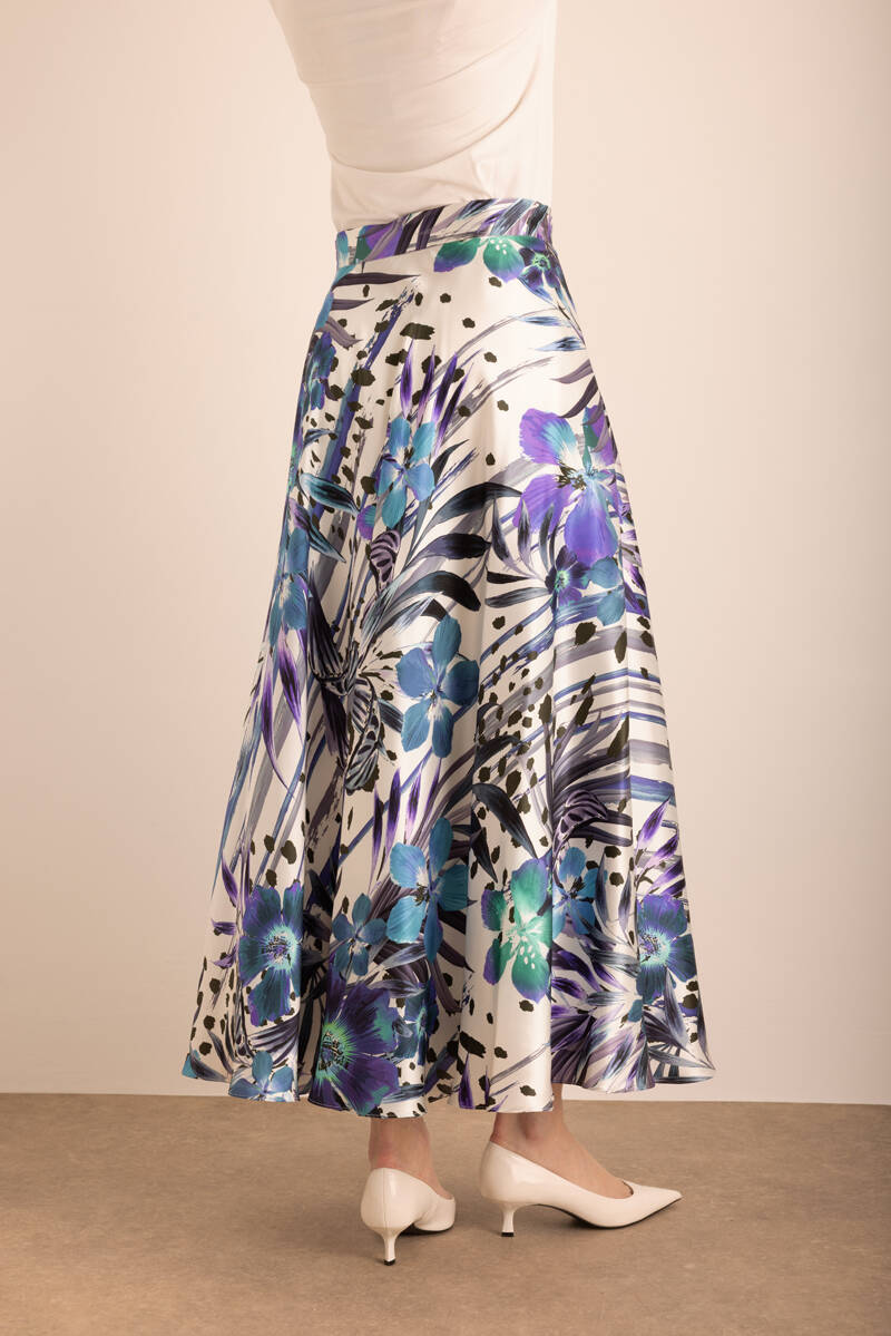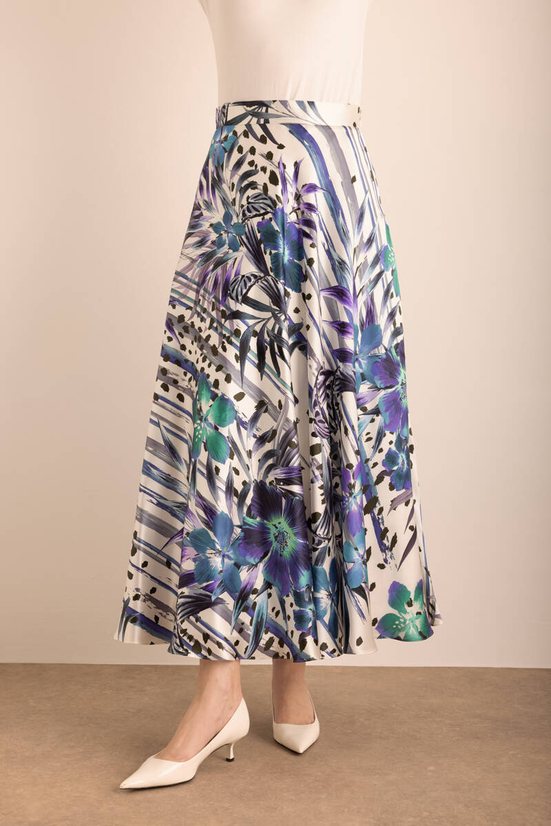 Mor Desenli Beli Lastikli İpek Pantolon Etek