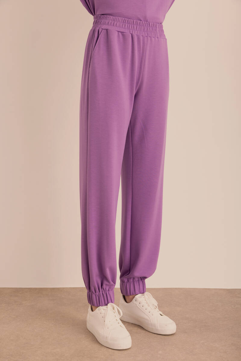 Fuşya Beli ve Paçası Lastikli Balon Form Keten Pantolon