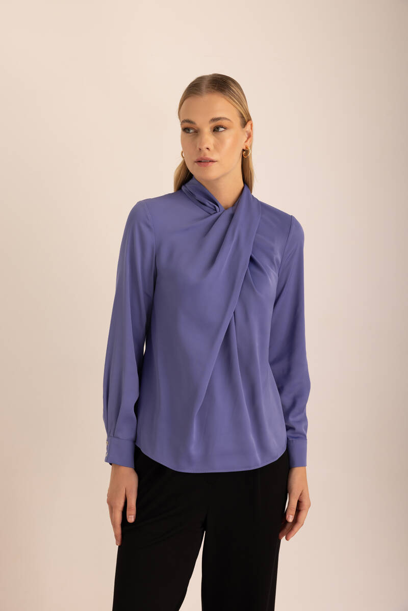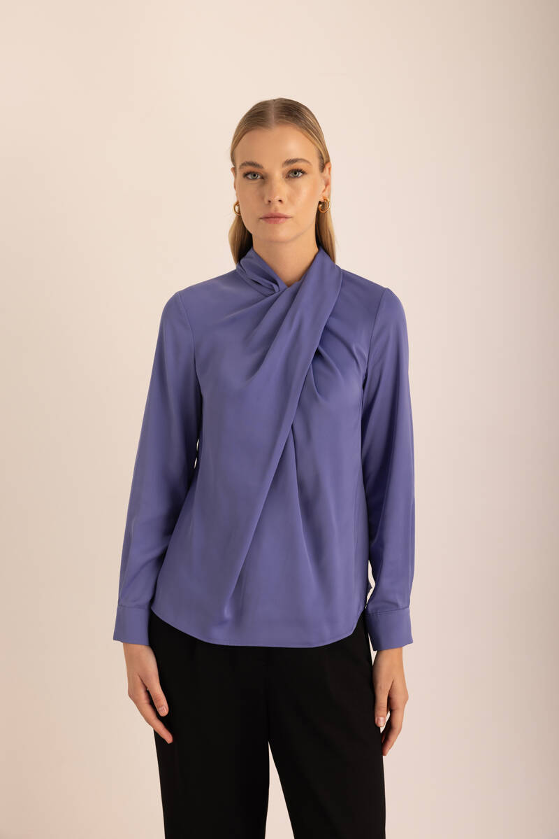 Saks Ön Göğüs Kısmı Pile ve Parça Detaylı Bluz