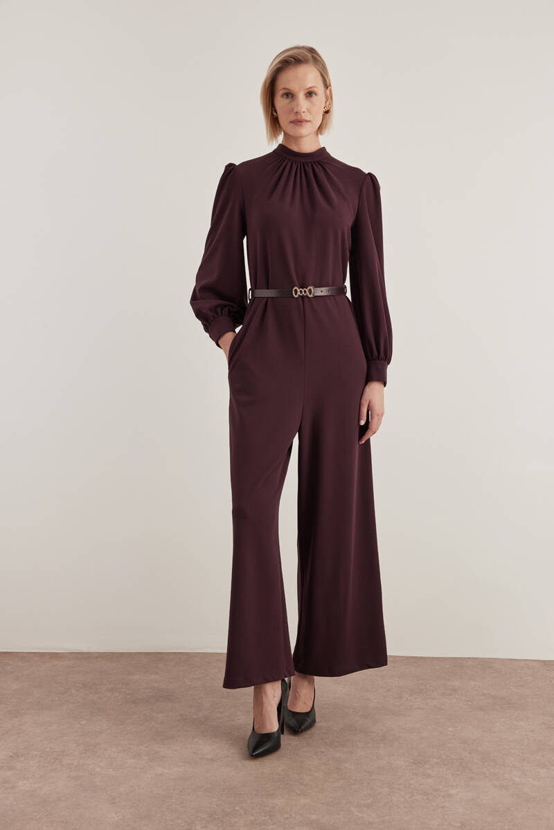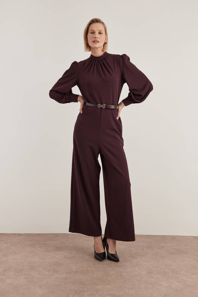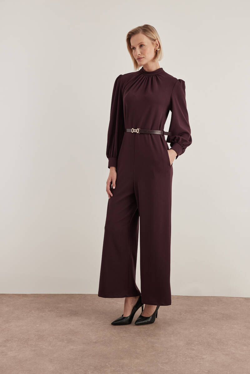 Fuşya Kemerli Pelerin Detaylı Dokuma Tulum