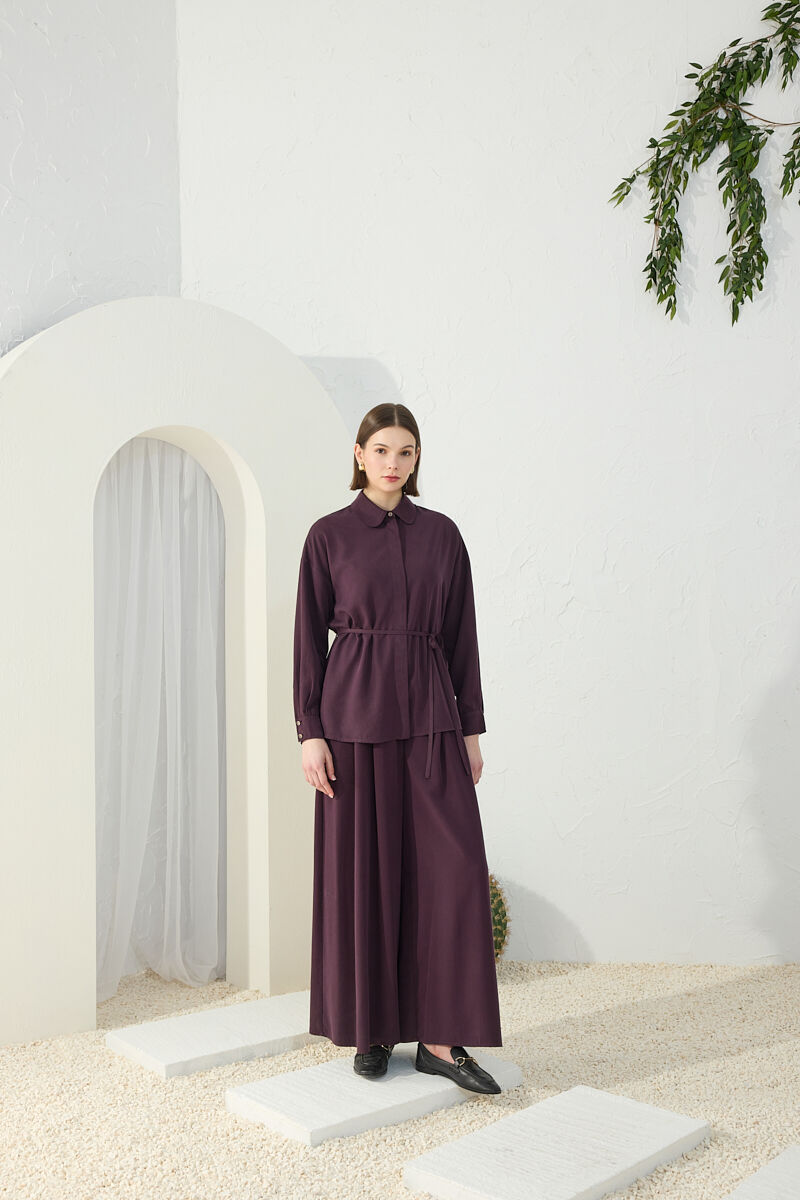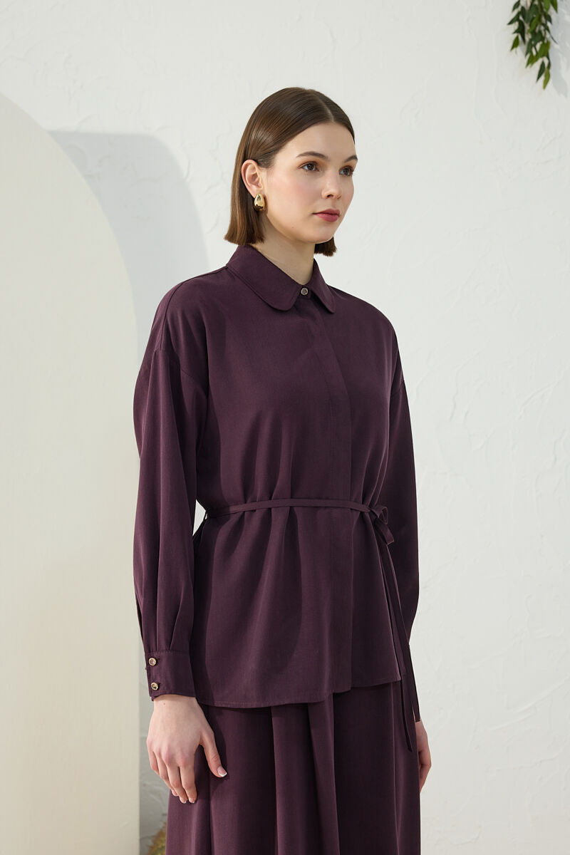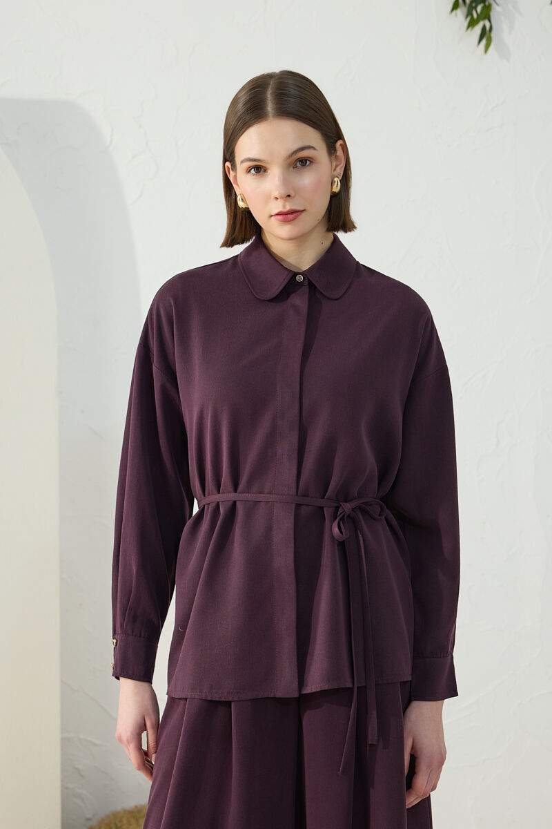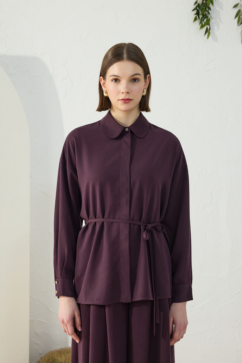 Saks Ön Göğüs Kısmı Pile ve Parça Detaylı Bluz
