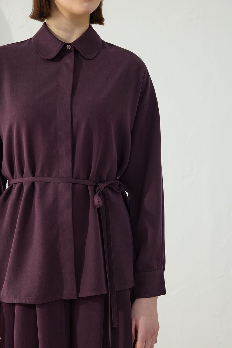 Lacivert Yandan Pili ve İşleme Detaylı Dokuma Bluz