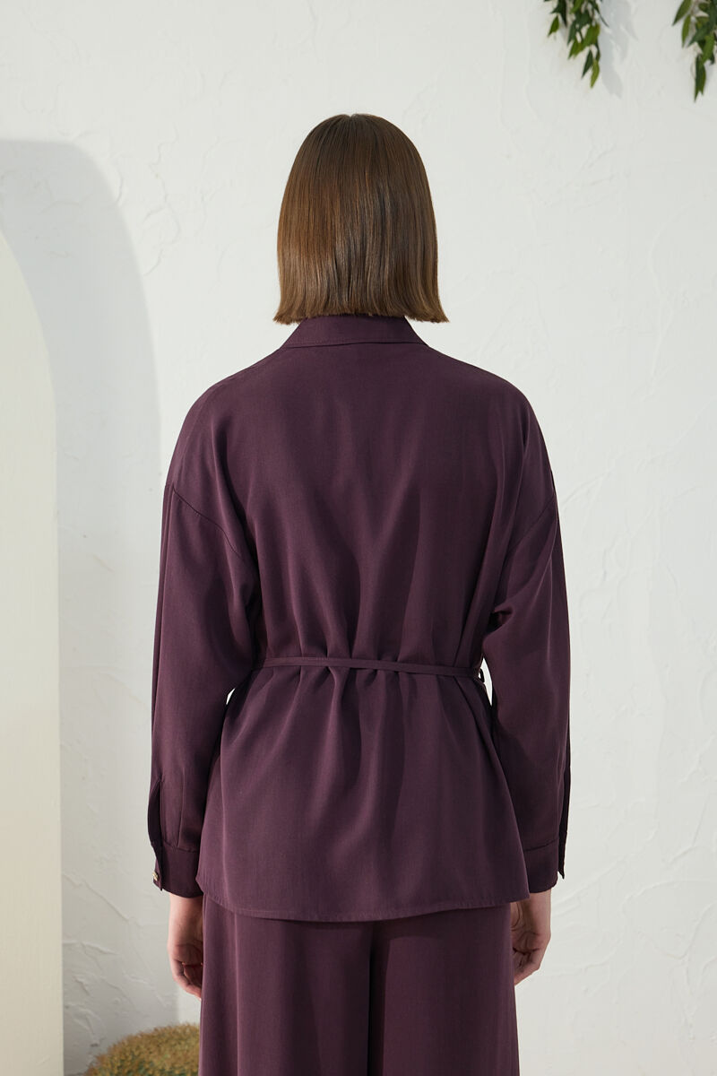 Fuşya Ön Göğüs Kısmı Pile ve Parça Detaylı Bluz