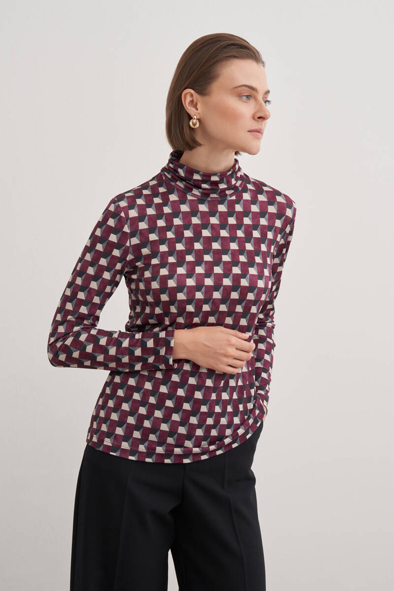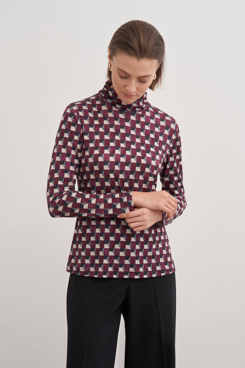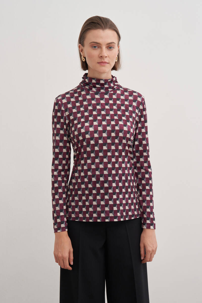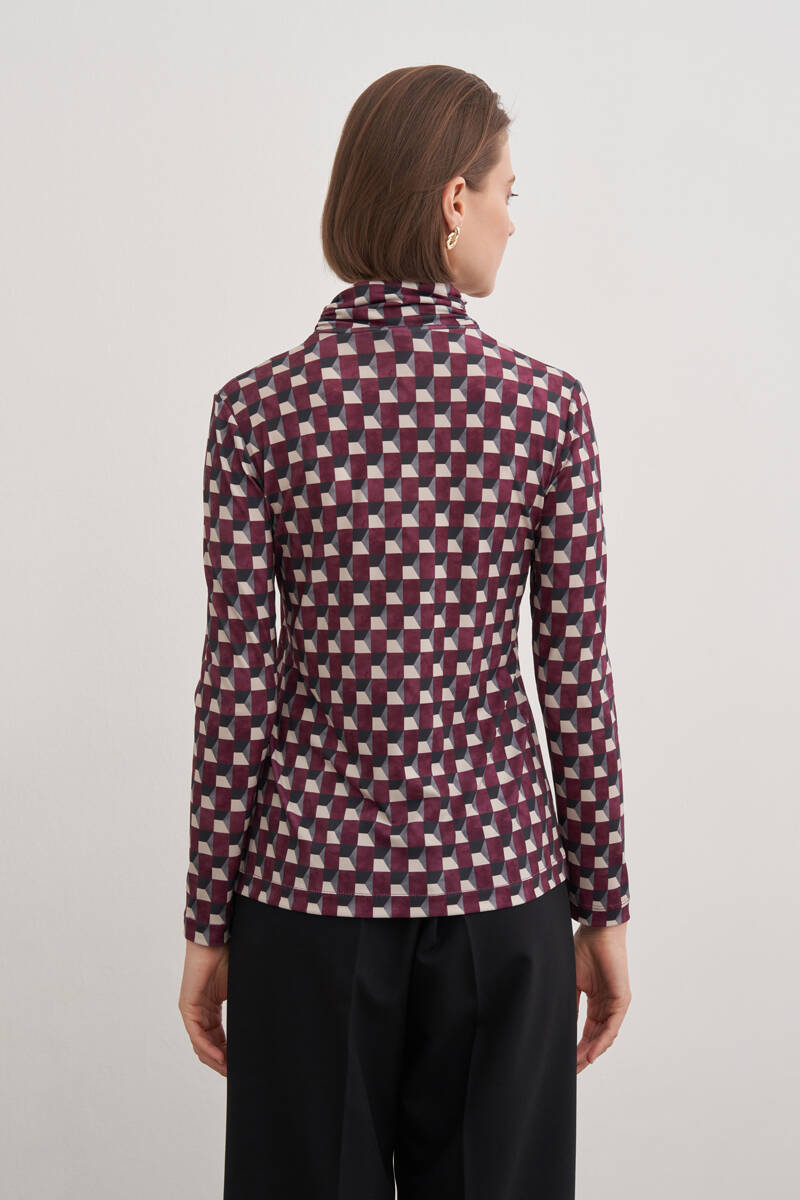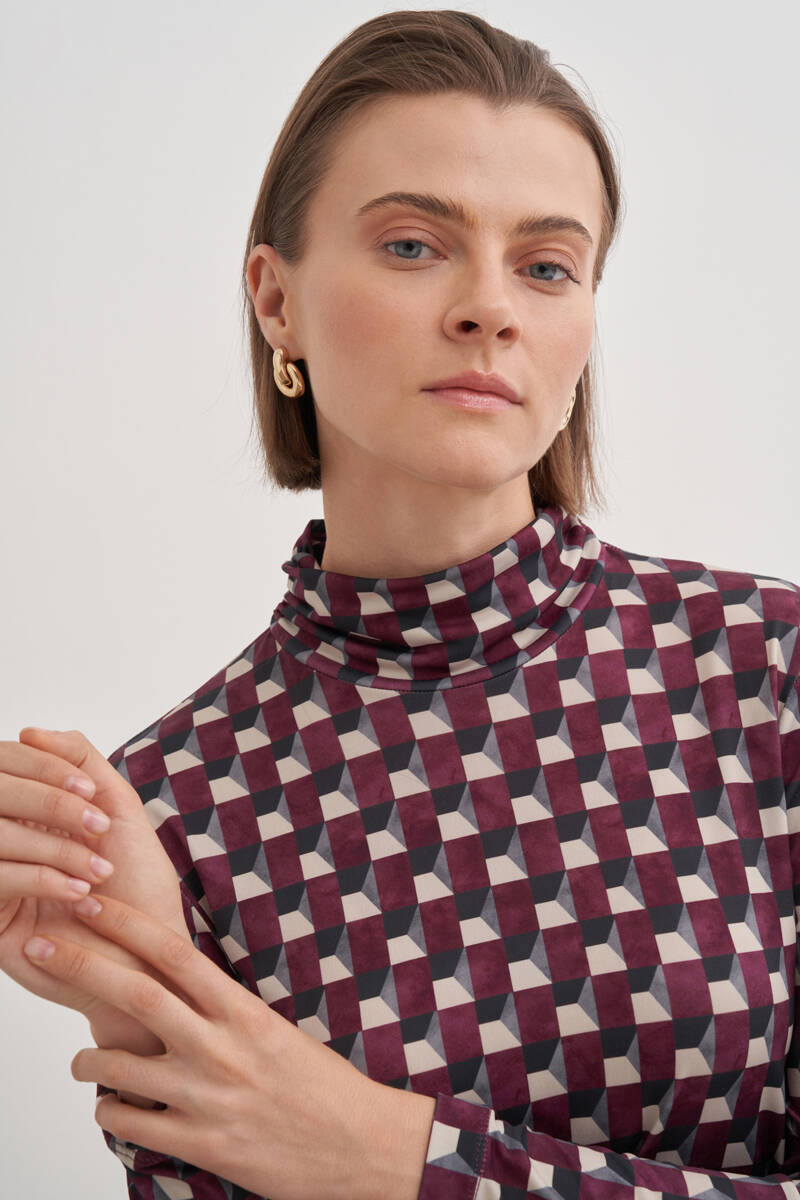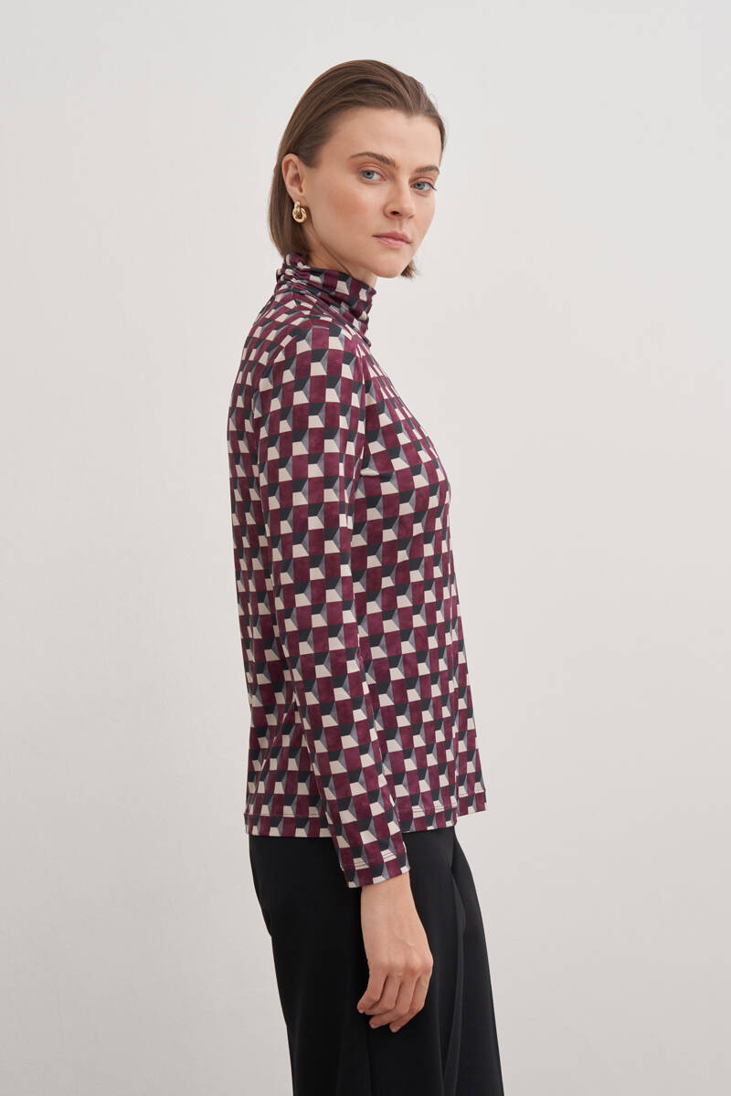 Kırmızı Çiçek Desenli İnce Dokuma Bluz