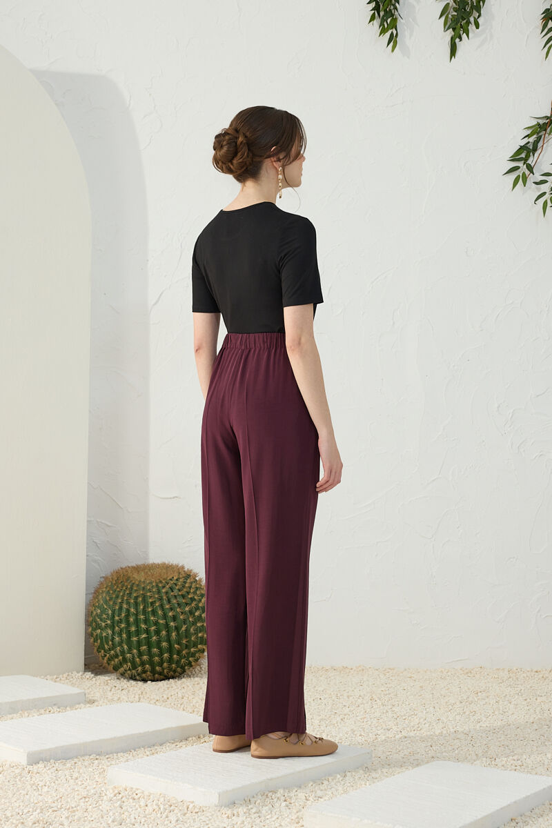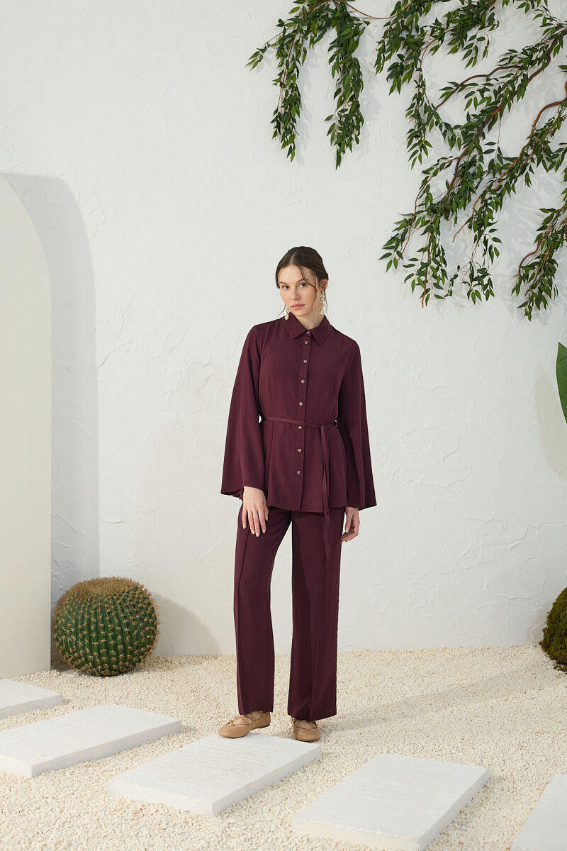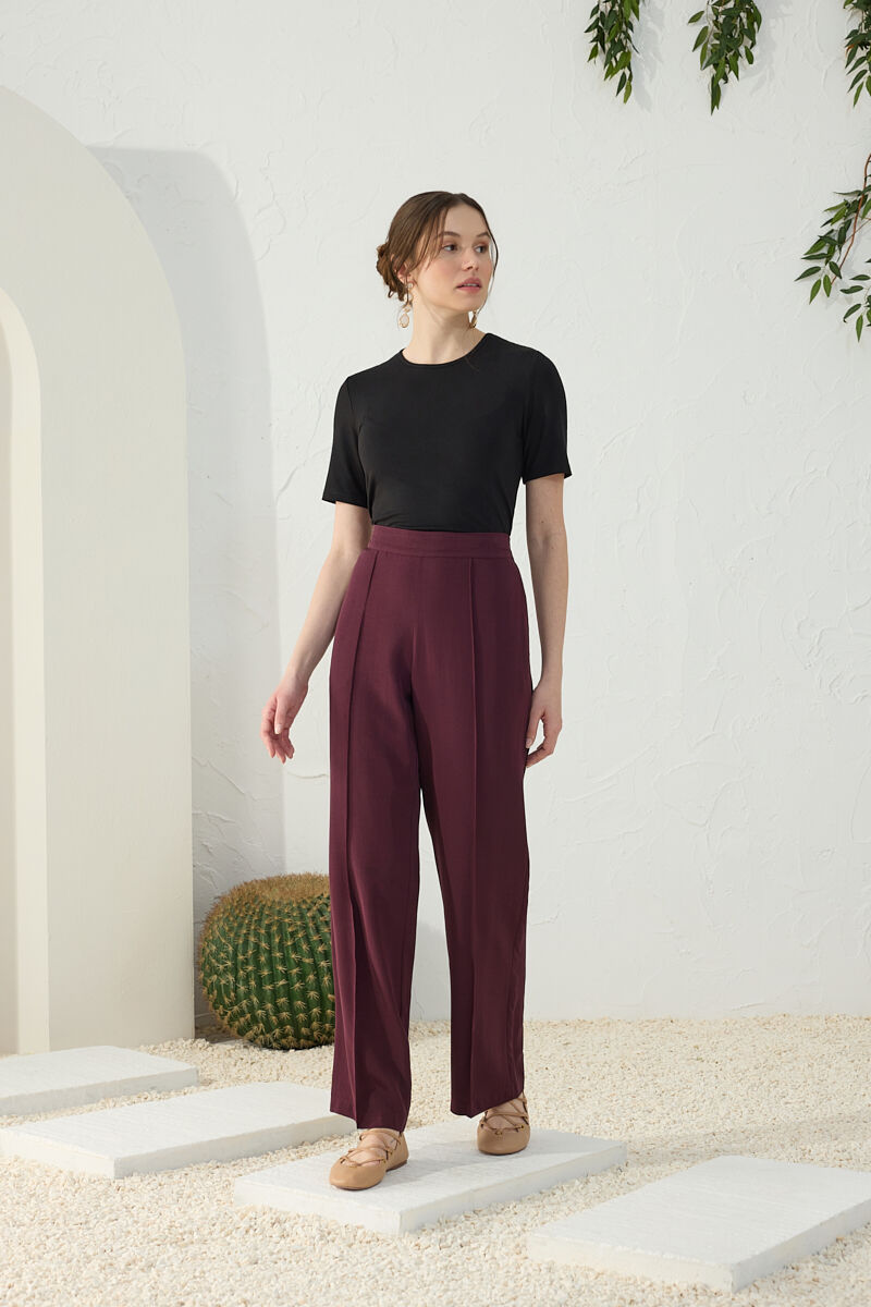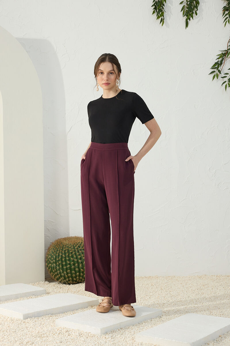 Kırmızı İspanyol Paça Dokuma Pantolon